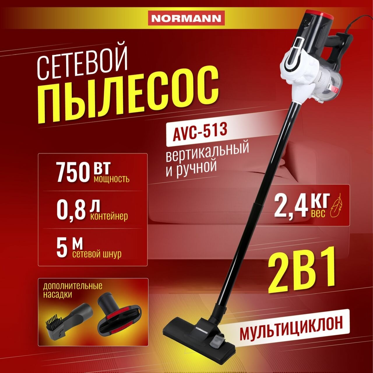 Пылесос вертикальный проводной NORMAN AVC-513, 750 Вт с HEPA-фильтром