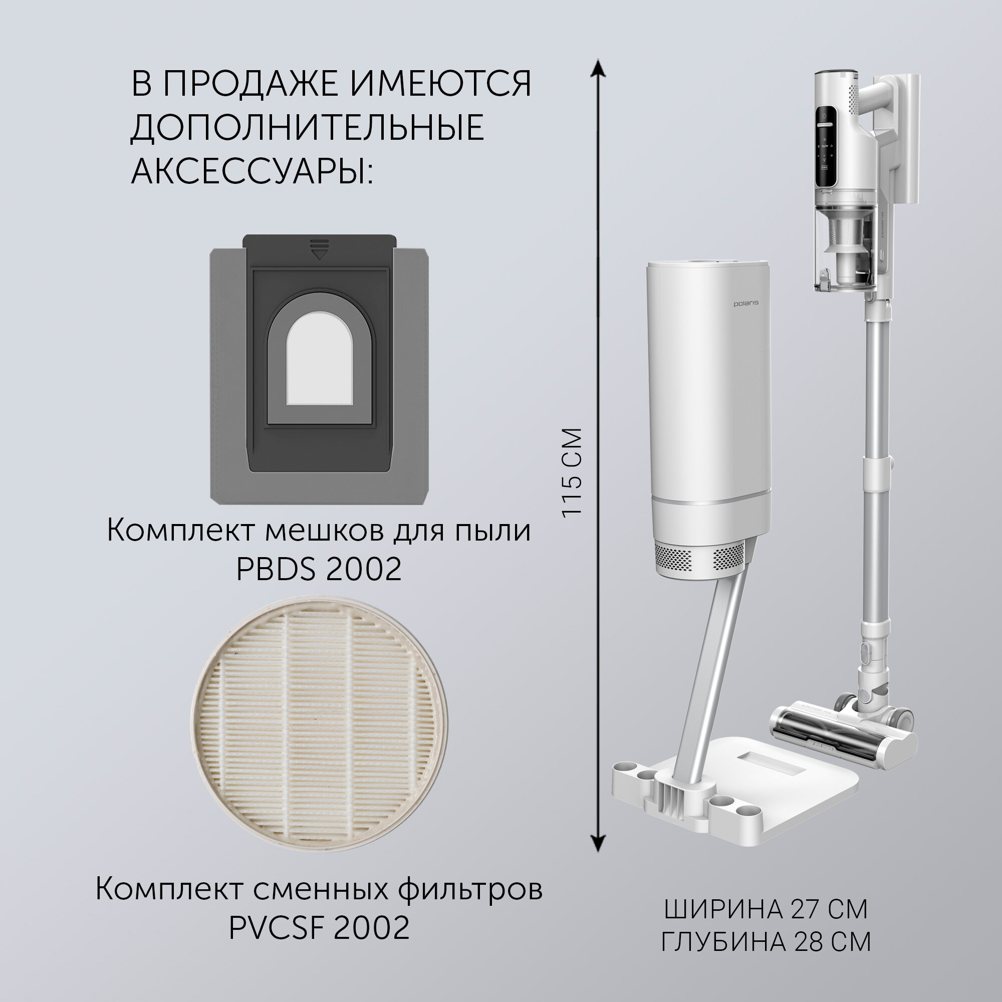 | Дополнительная информация | вертикальная парковка, индикатор заполнения пылесборника, регулировка мощности, насадка с LED подсветкой, съемный ручной пылесос, сменный аккумулятор в комплекте, подсветка зоны уборки, светодиодный дисплей |