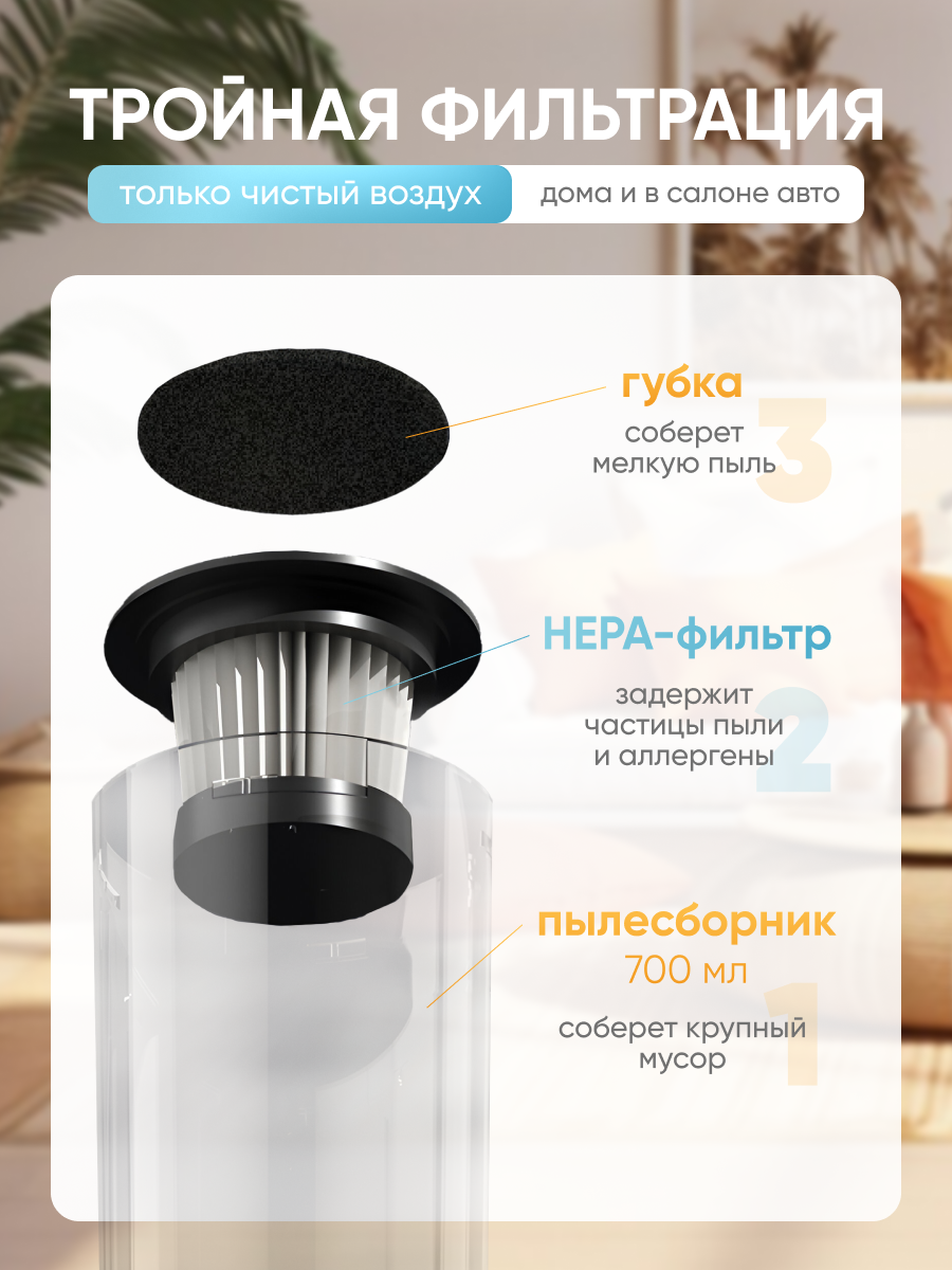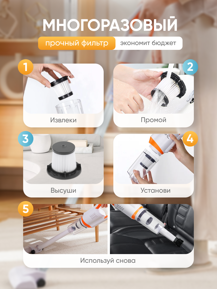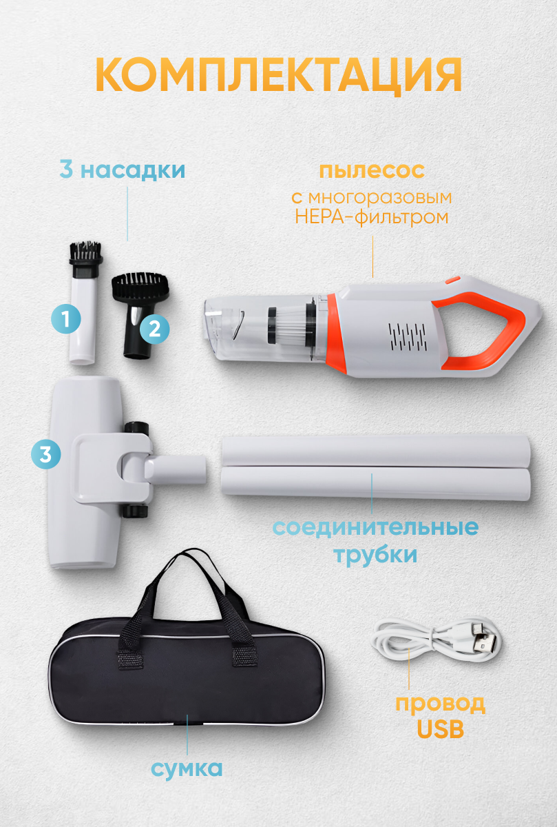 Пылесос NAVISA вертикальный беспроводной мощный для дома и автомобиля, белый интересное: