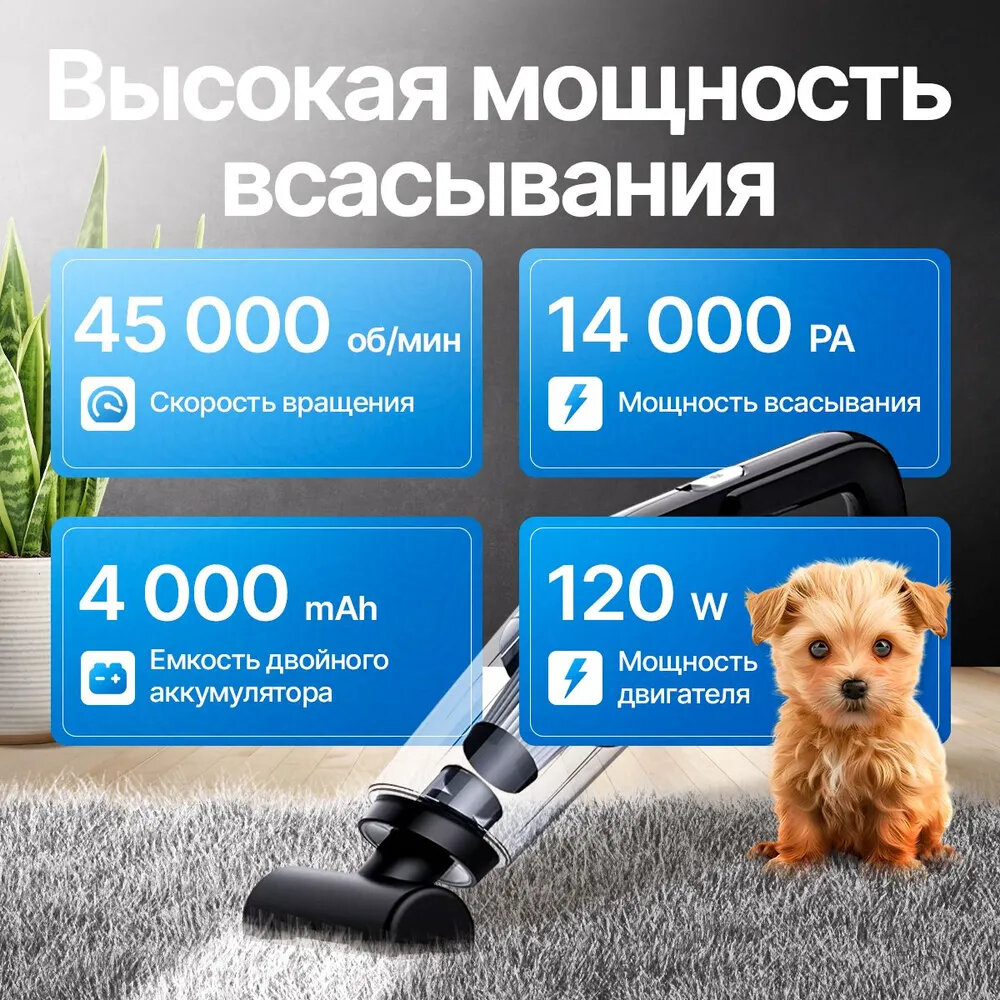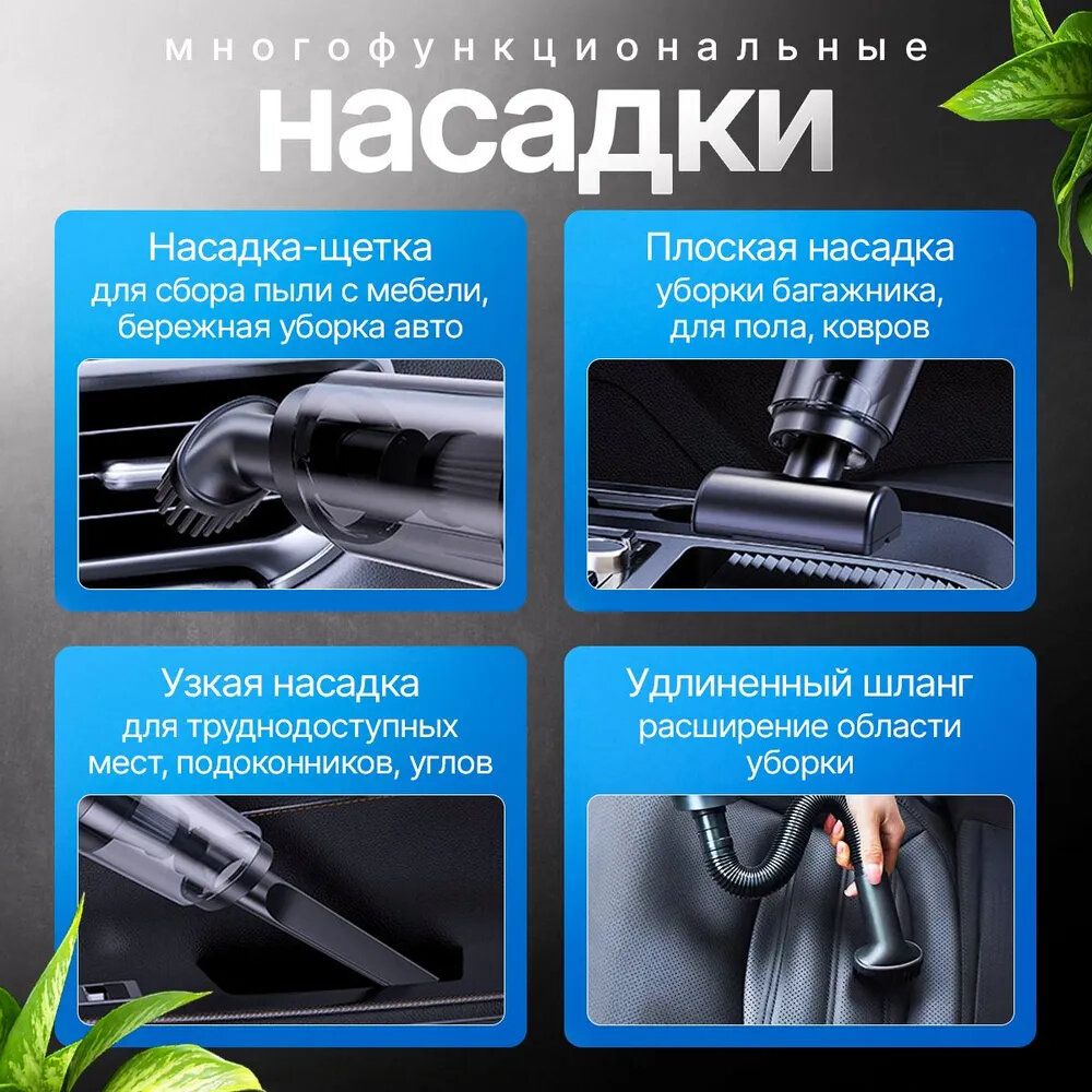 Пылесос аккумуляторный для автомобиля, Черный, 120W, 4000mAh интересное: