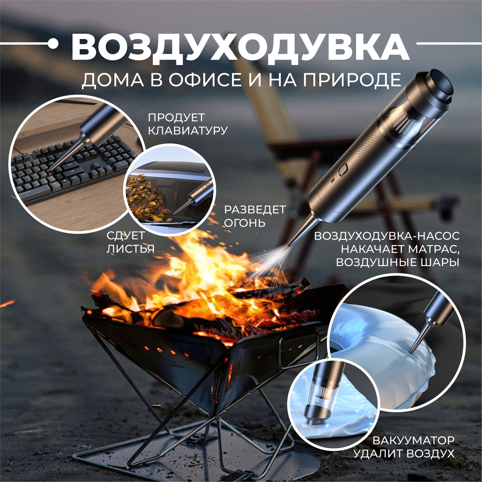 | В комплекте | насадка для автомобиля, насадка для клавиатуры, насадка для радиаторов |