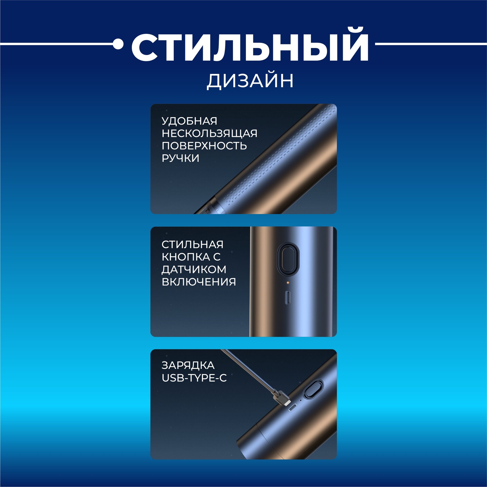| Особенности конструкции | место для хранения насадок / управление мощностью на рукоятке |