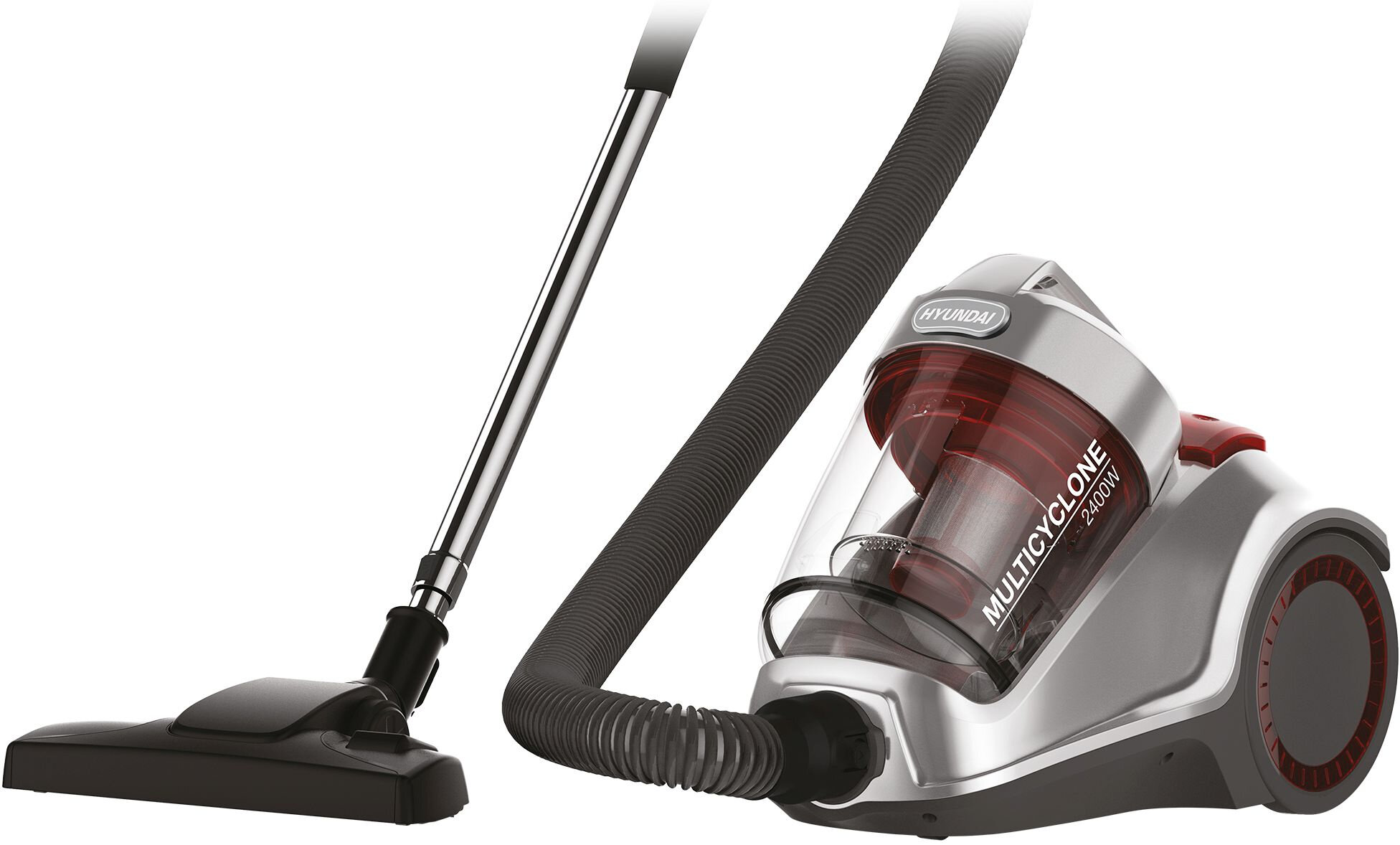 Пылесос HYUNDAI HYV-C4570, серебристо-красный, 2400W/380W