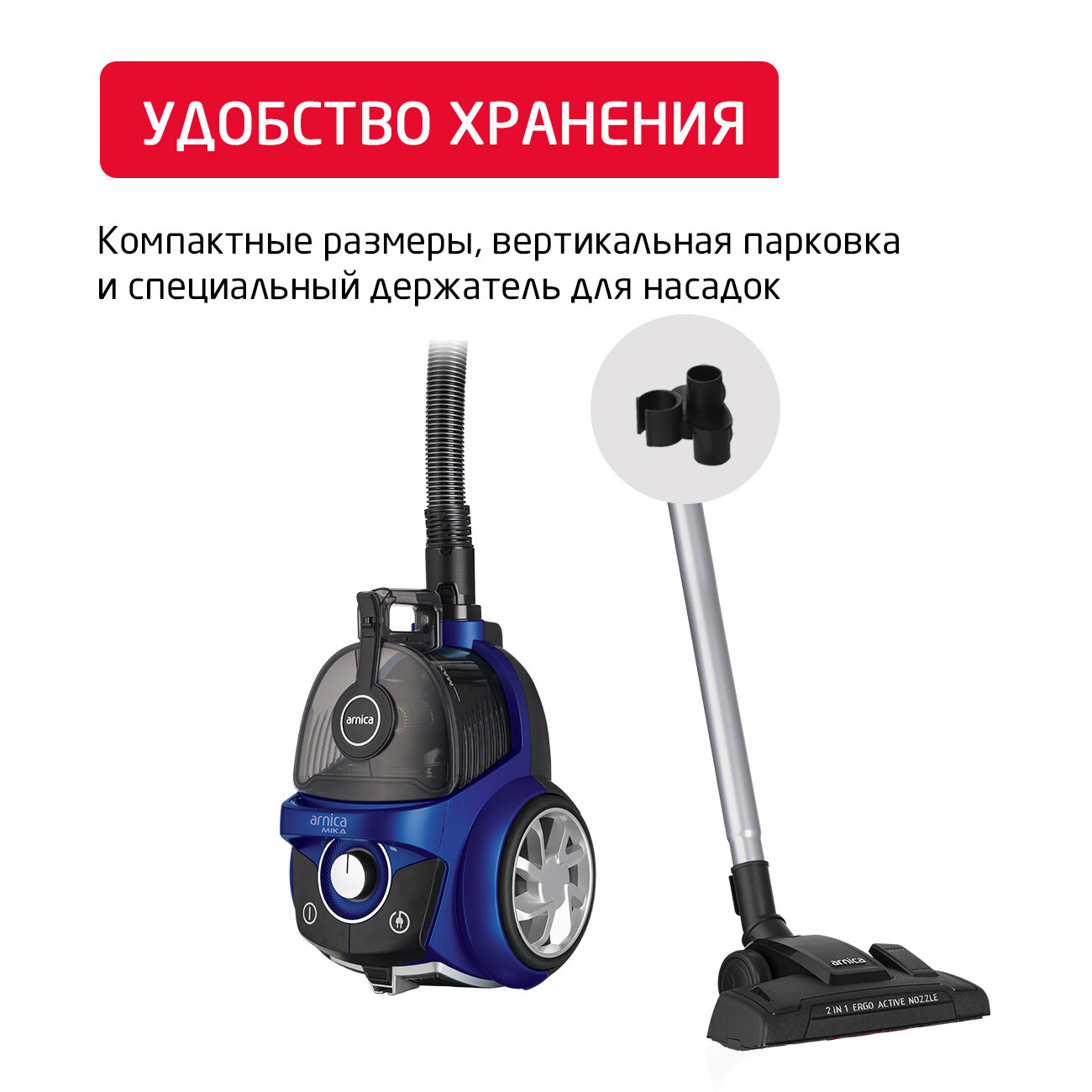 | Особенности конструкции | вертикальная парковка / индикатор заполнения пылесборника / место для хранения насадок / регулятор мощности на корпусе |