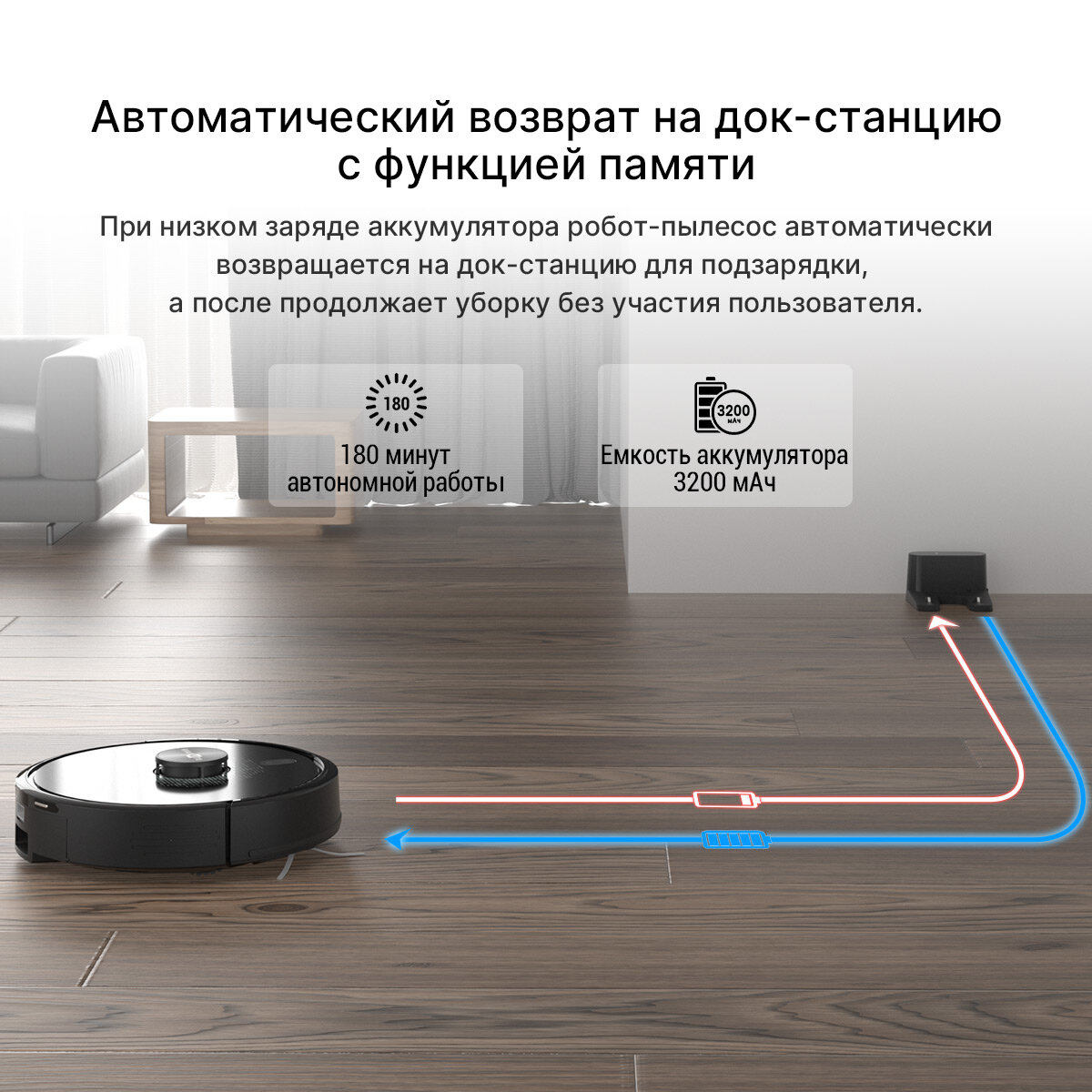 | Дополнительные функции | ограничение времени уборки / построение карты помещения / программирование по дням недели / расчет времени уборки / регулятор мощности на корпусе / таймер |