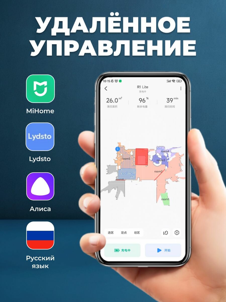 Мощный робот пылесос для сухой и влажной уборки Lydsto R1D EDGE / Моющий пылесос для дома / Версия на русском языке интересное: