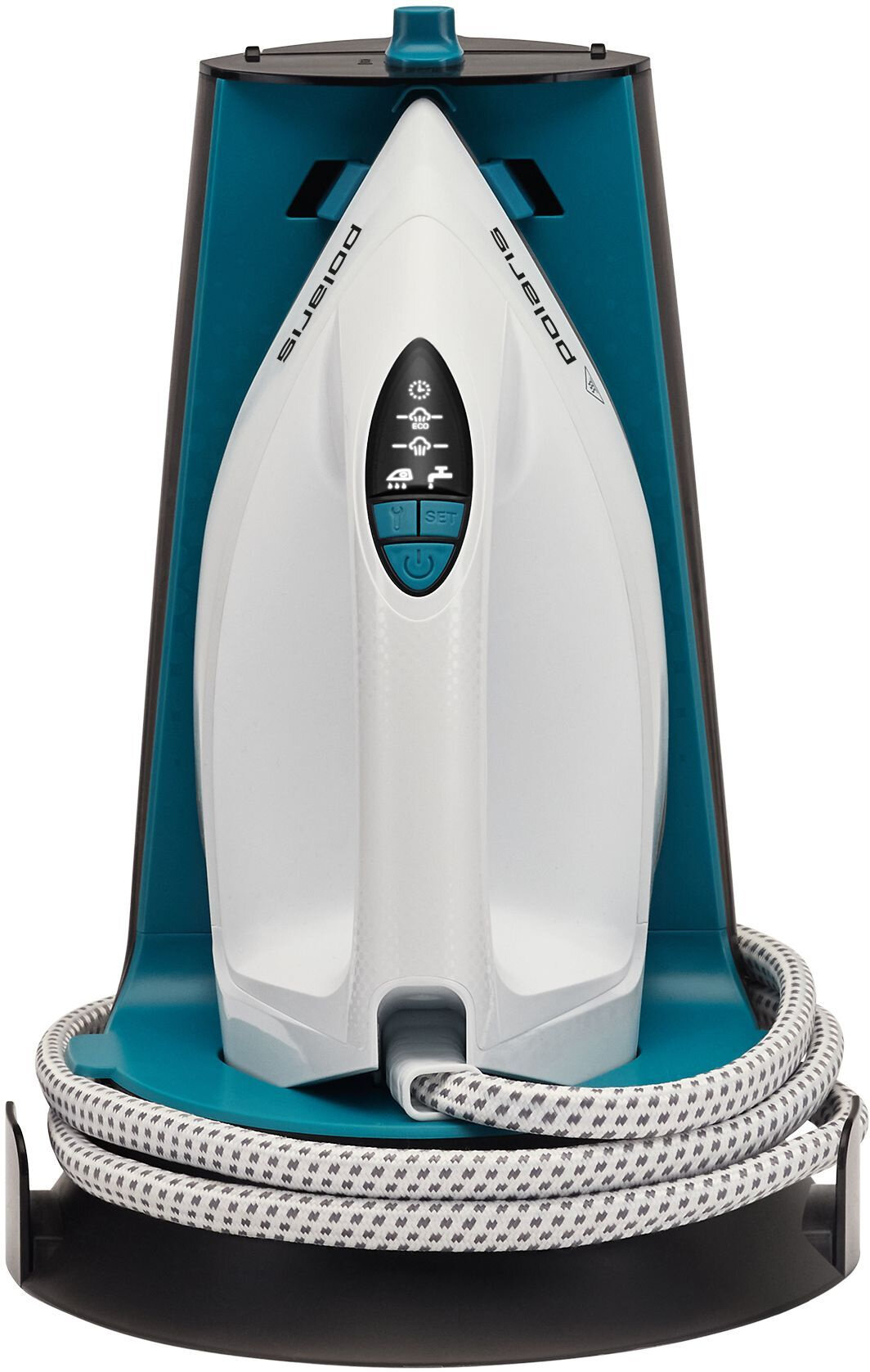 Купить Парогенератор Polaris PSS 7570K, белый/бирюзовый, 7 бар, керамическая подошва, 30 сек, 1.5 л, паровой удар