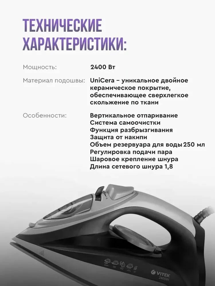 Утюг Vitek VT-8354 2600Вт фиолетовый/белый