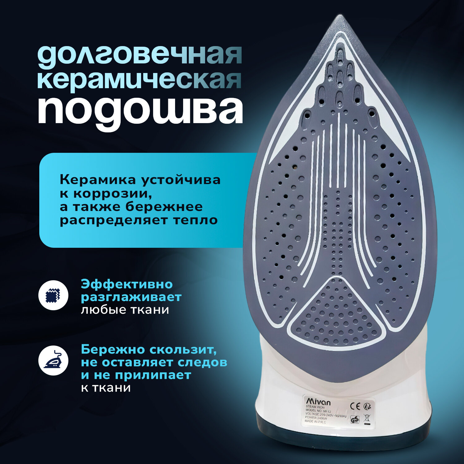Купить Утюг Mivan мощный электрический для глажки с отпаривателем с самоочисткой