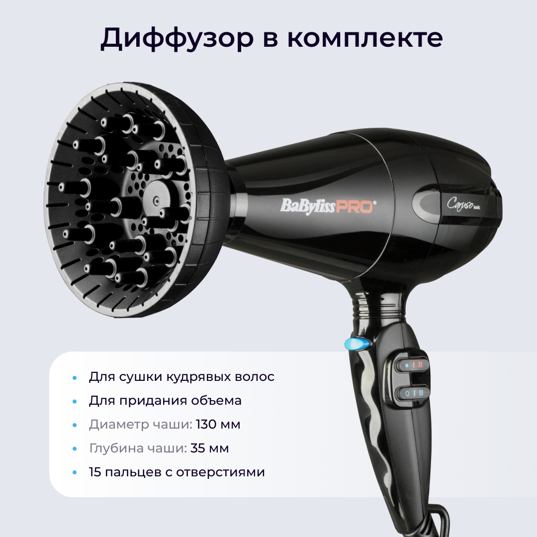 Профессиональный фен BaByliss Pro Caruso + диффузор BABD11E интересное: