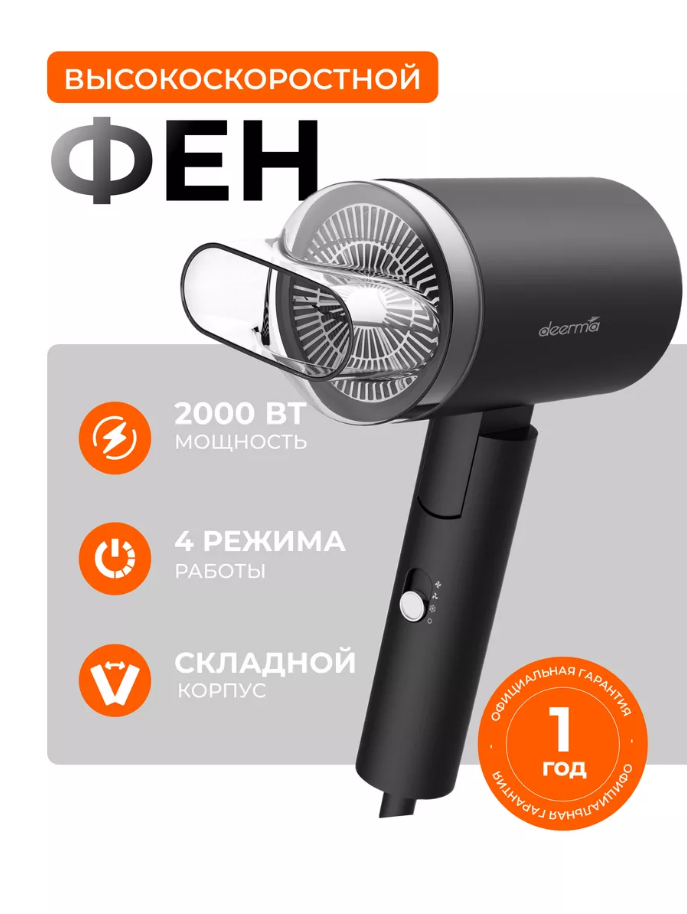 Фен Deerma Hair Dry DEM-CF40W-B, черный интересное: