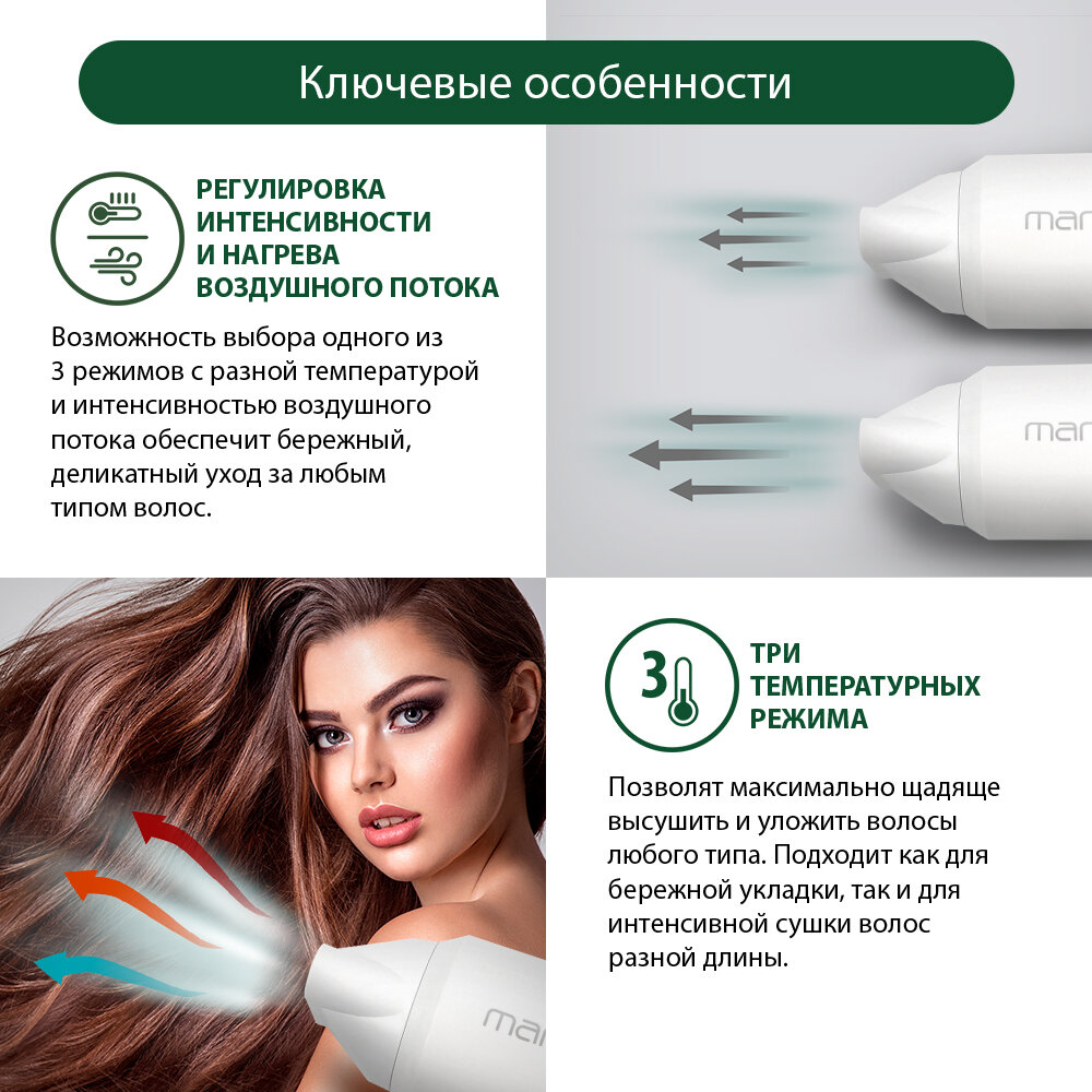 Фен MARTA MT-1267 белый коралл Технология tourmaline ionic интересное: