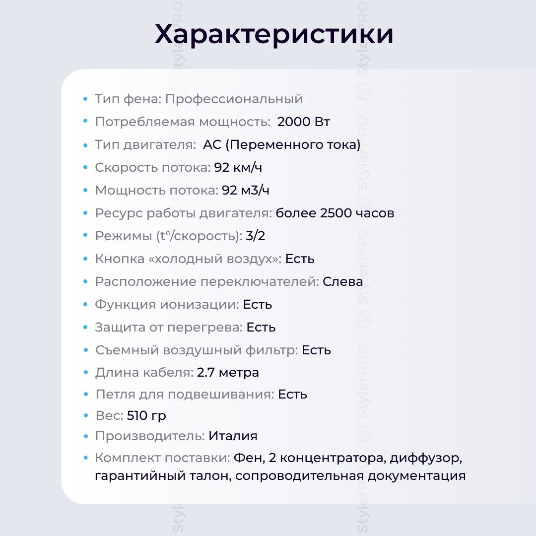 | Мощность фена | 2000 Вт |