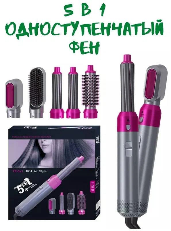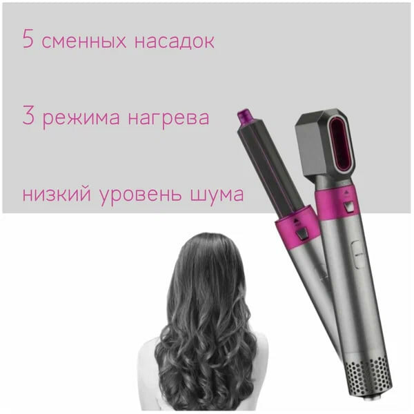 Фен для волос 5 в 1 с насадками/стайлер для волос фиолетовый интересное:
