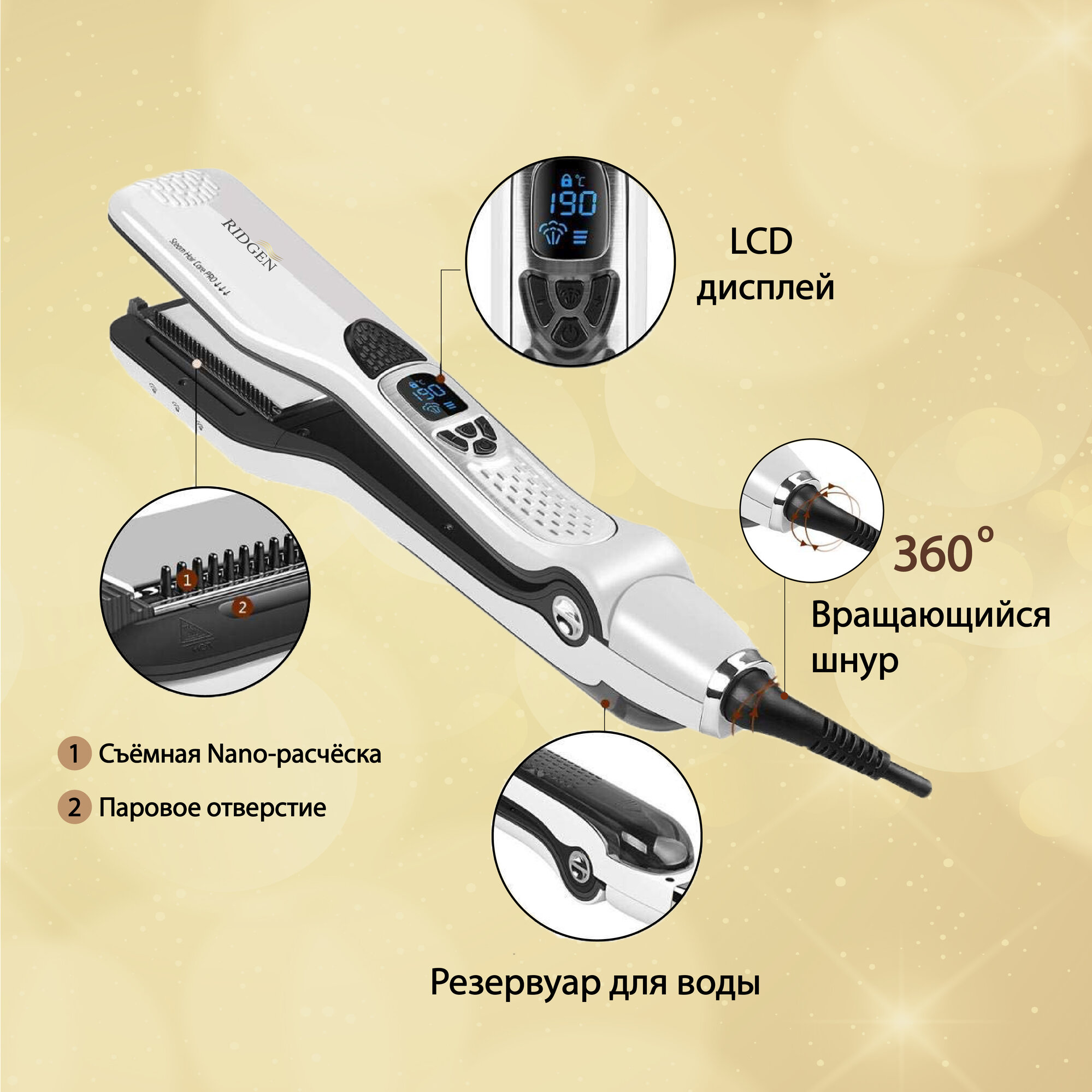 Профессиональный паровой выпрямитель для волос RIDGEN HS 808 / White интересное:
