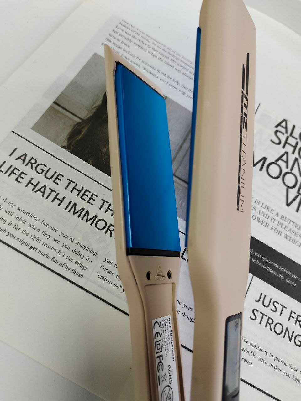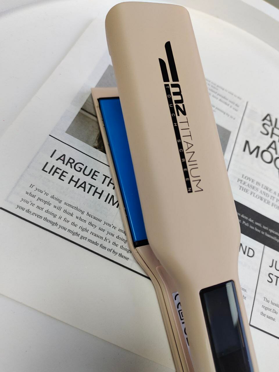 Утюжок MZ Titanium молочный, голубые пластины, матовый интересное: