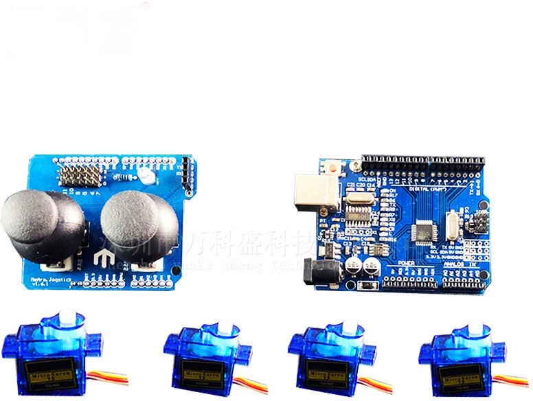 | Комплектация | Контроллер ардуино; 4 серводвигателя; плата двойного джойстика управления; набор деталей и крепежа; |