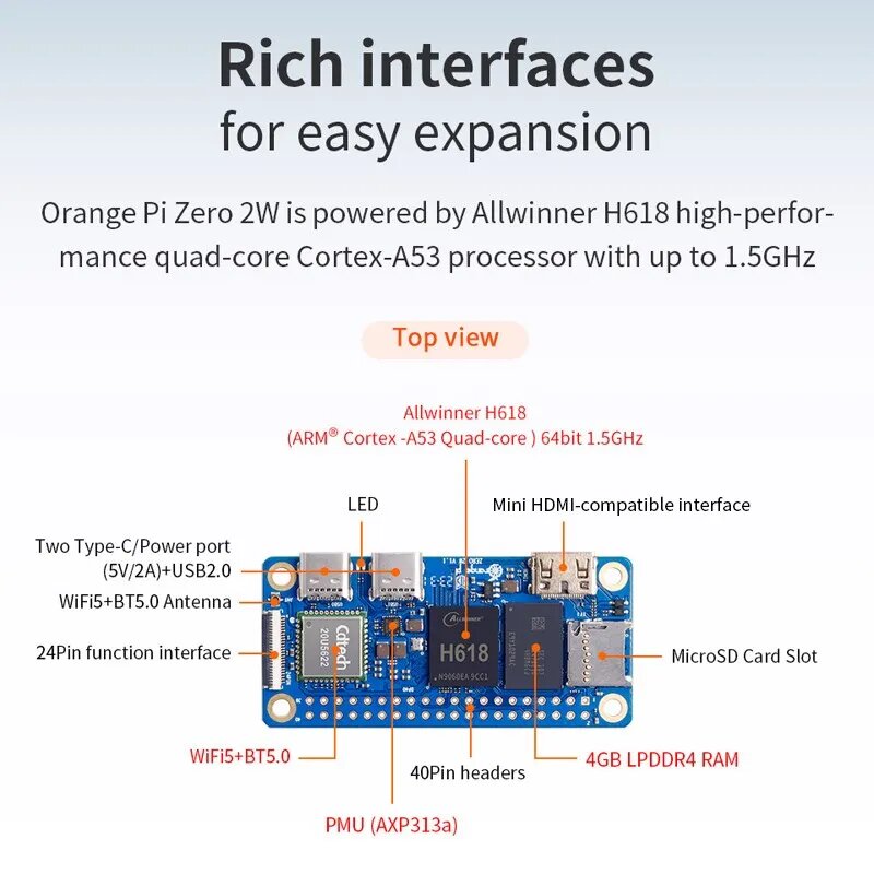 Мини-ПК Orange Pi Zero 2 Вт, 1 Гб, 1,5 ГБ, 2 ГБ, 4 Гб, Allwinner H618, Allwinner H618, четыре ядра интересное: