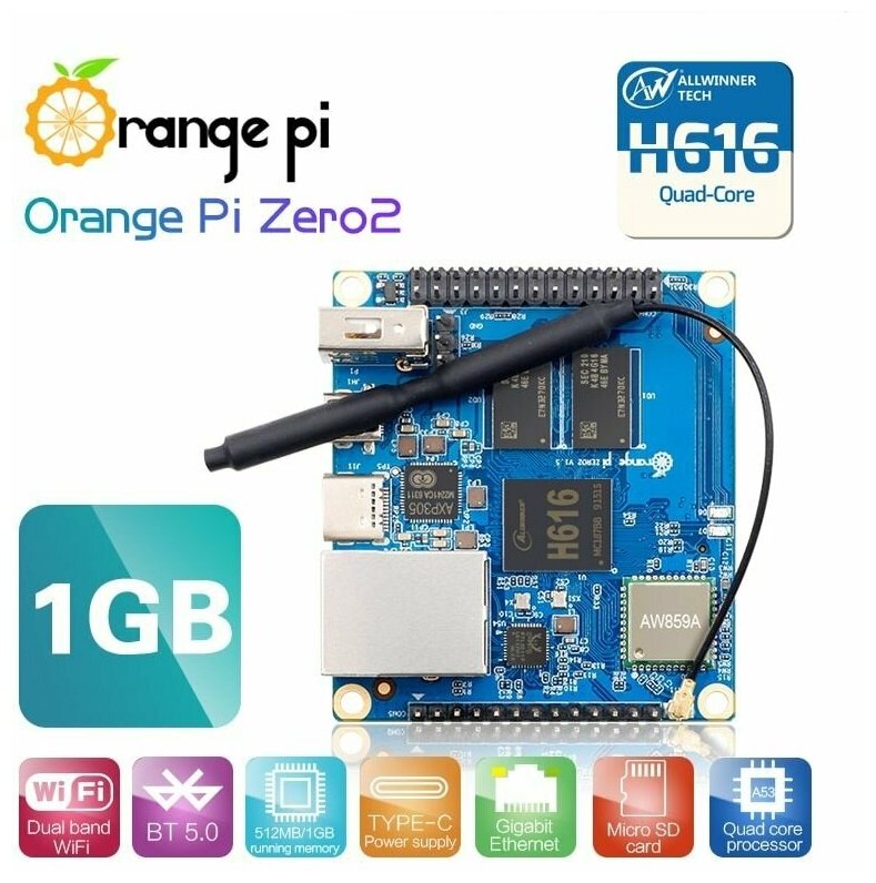 Orange Pi Zero 2 1ГБ H616 микрокомпьютер / мини компьютер / пк / орандж пай / одноплатный комьютер