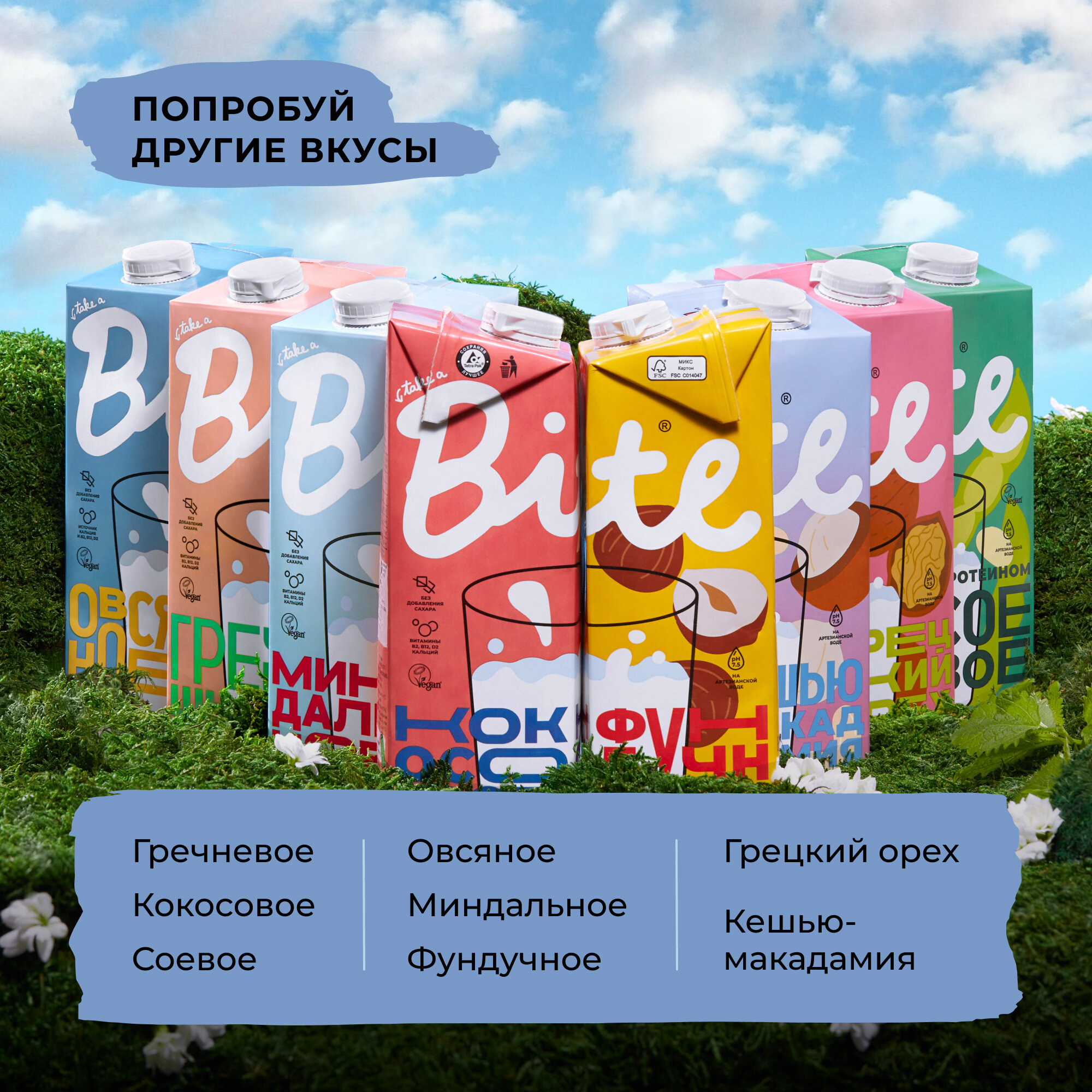 Растительное молоко Take a Bite, ассорти 3 вкусов, без сахара, безлактозное, 3 шт по 1 л
