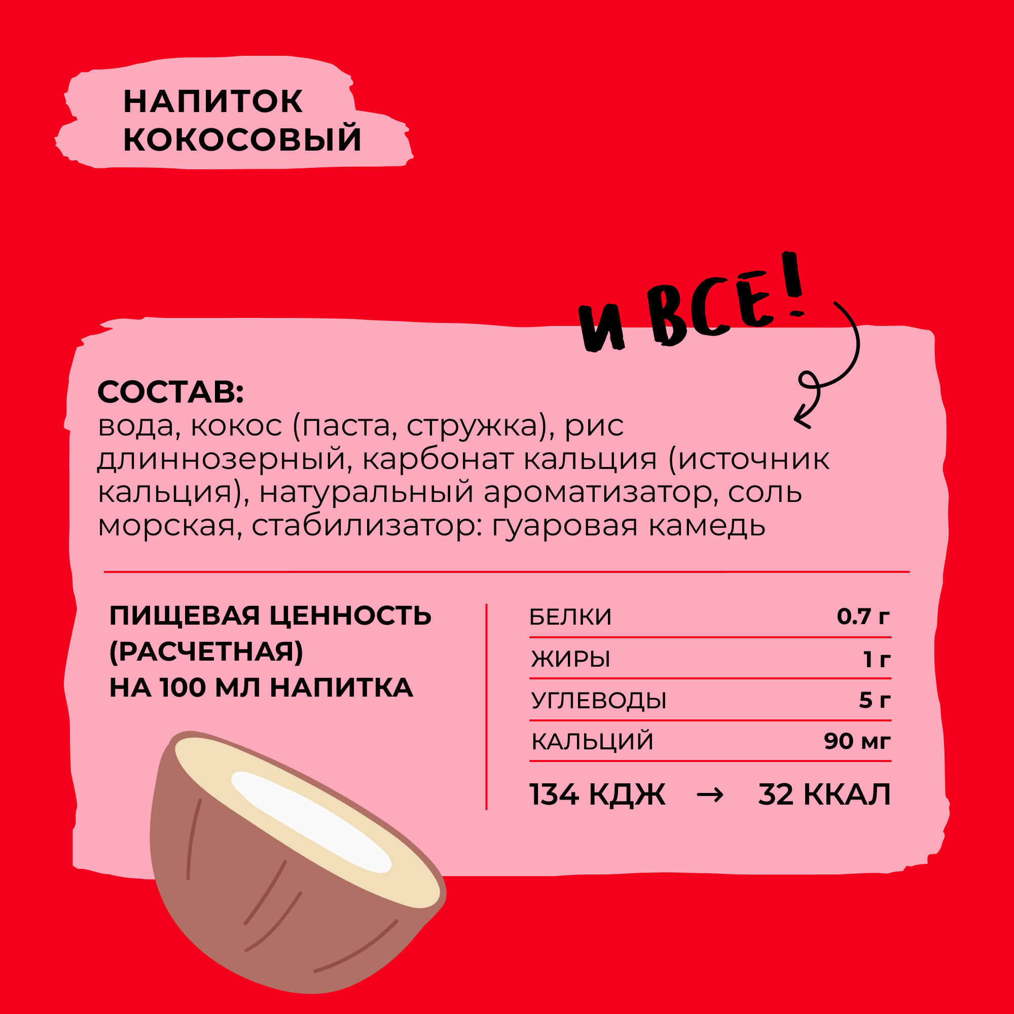 | Состав | Вода, фундук (паста, орех), рис длиннозерный, карбонат кальция (источник кальция), натуральный ароматизатор, соль морская, стабилизатор: гуаровая камедь. |
