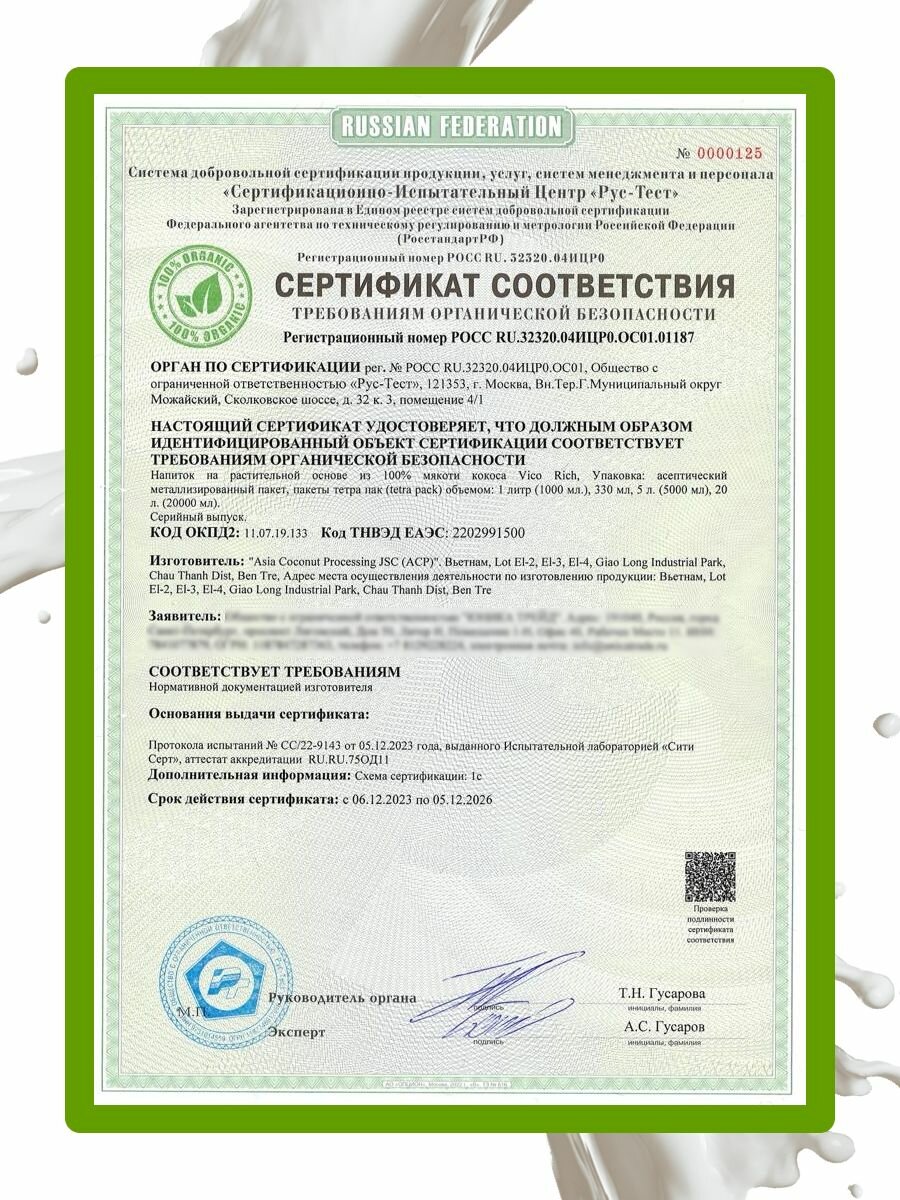 Органическое кокосовое молоко 1л х 12шт интересное: