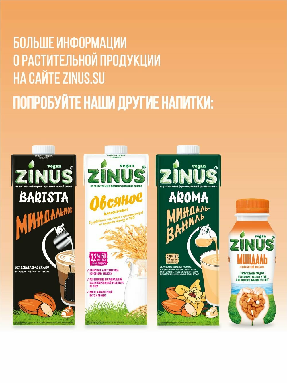 Zinus Vegan "Миндальное" 1,8%, 1л, ТВА/коробка 4шт/. Продукт на растительном сырье интересное:
