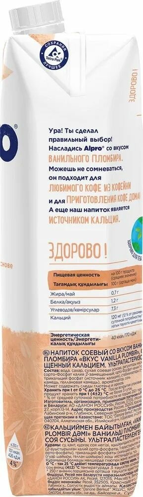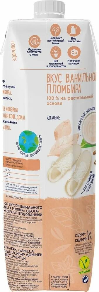 Напиток соевый со вкусом ванильного пломбира обогащенный кальцием, Planto Aroma, Россия, 1 л х 1шт интересное:
