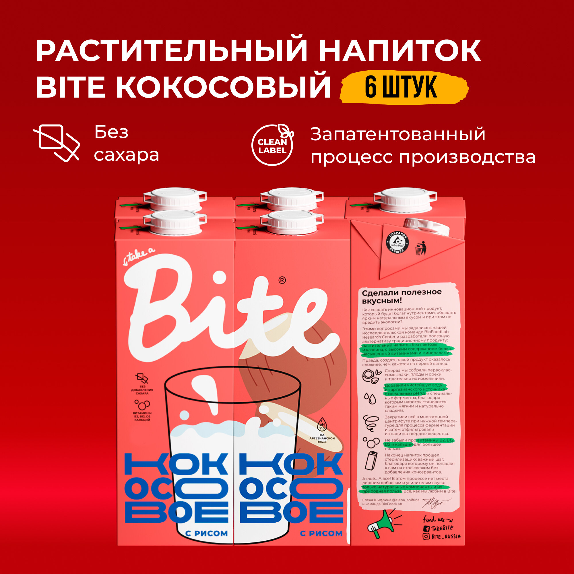 Кокосовое молоко Take a Bite, без сахара, безлактозное, 6 шт по 1 л интересное: