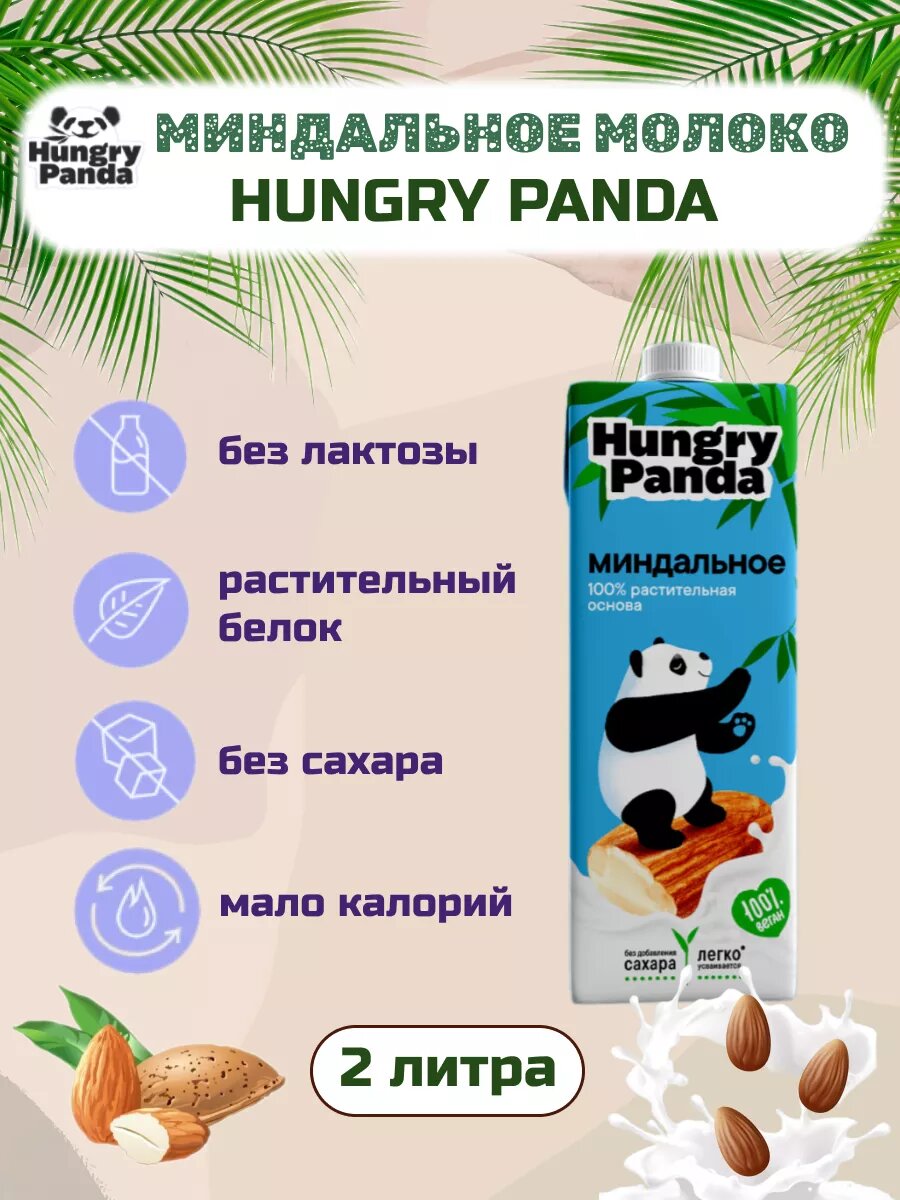 Миндальное молоко Hungry Panda без сахара 2 упаковки по 1 л интересное: