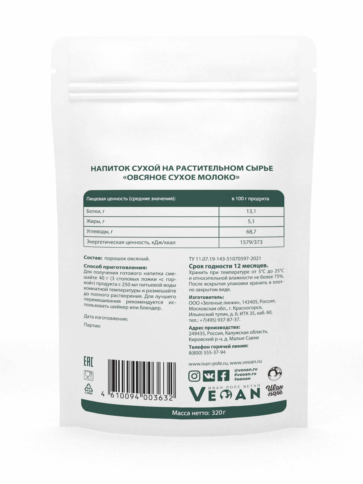 Сухое растительное молоко Иван-поле, овсяное без сахара 320 г