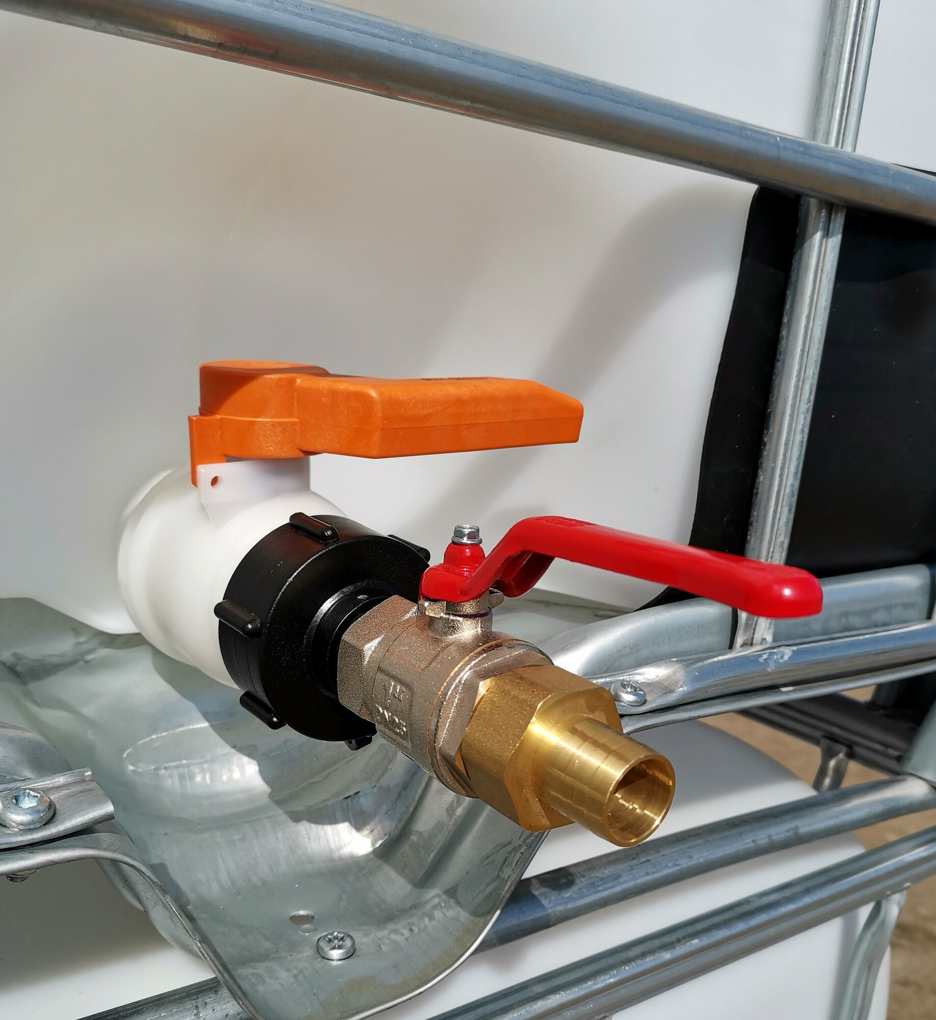 Купить Кран на Еврокуб 1" / Переходник для Еврокуба / Вход 60мм крупная резьба, шаг 6мм, выход штуцер 25мм