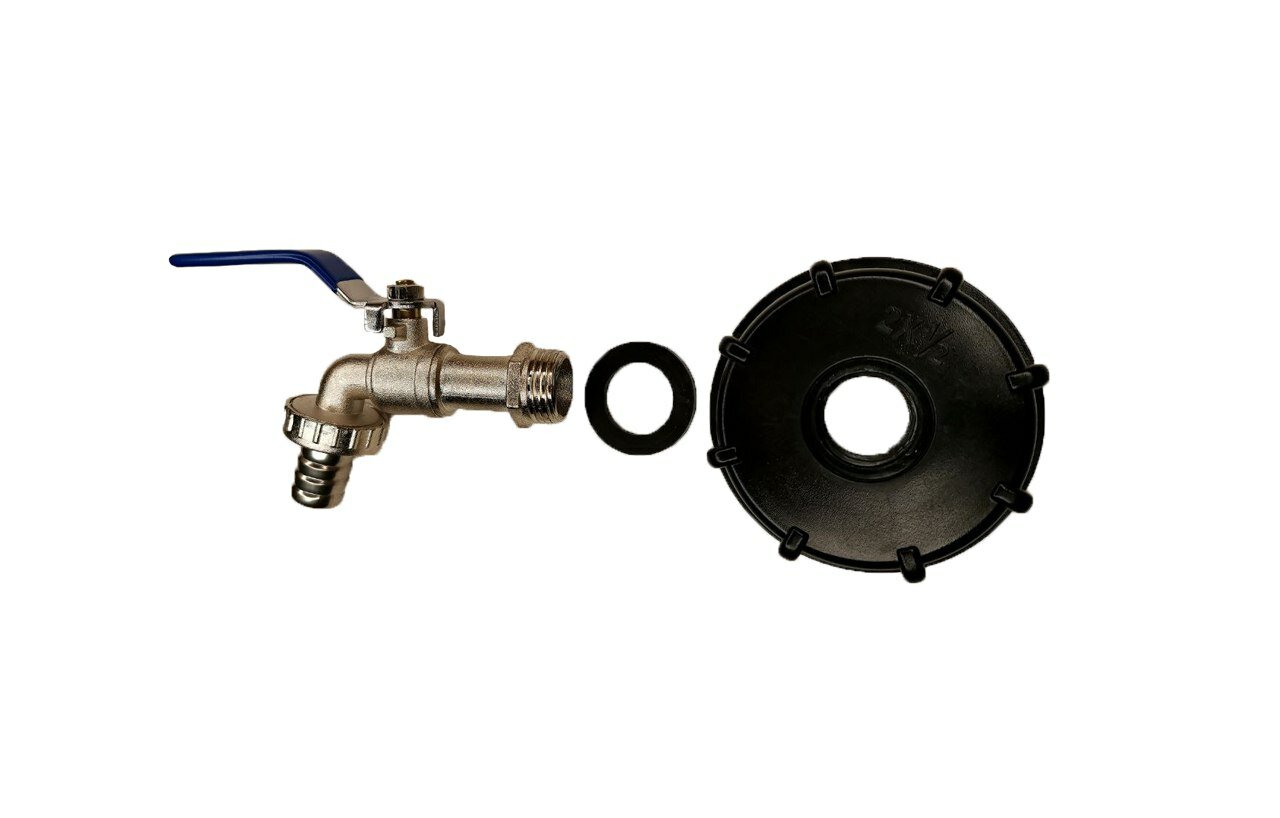 Кран на бочку 2" / Кран на Еврокуб / Вход 60мм, 2" сантехническая резьба, выход 55мм под шланг