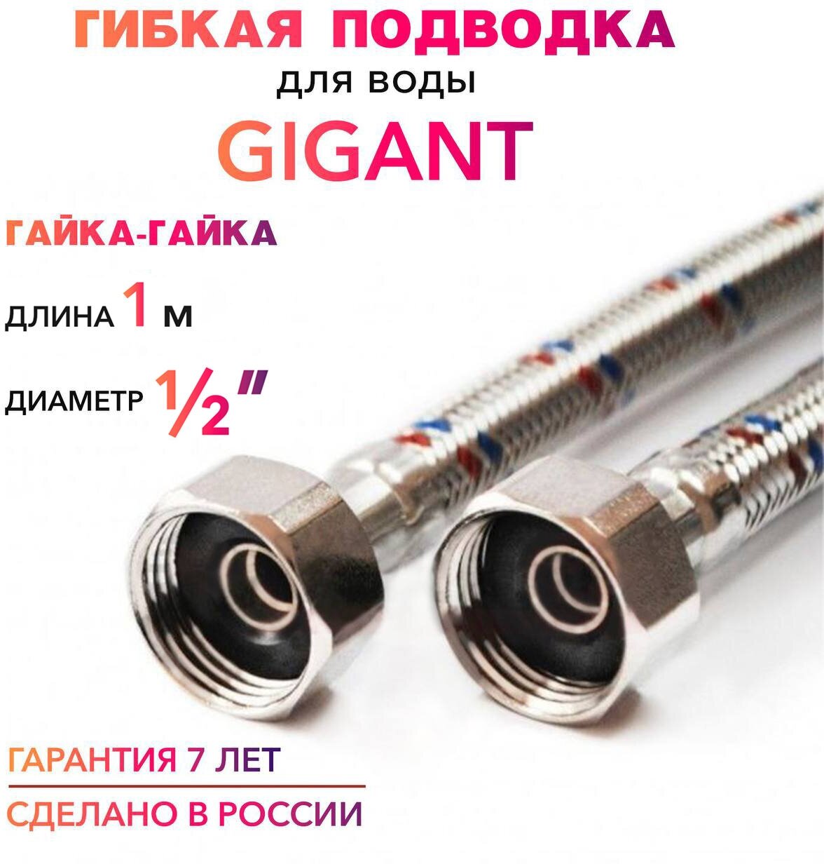 Купить Гибкая подводка для воды гигант 1/2" гайка-гайка 100 cм MK Plast