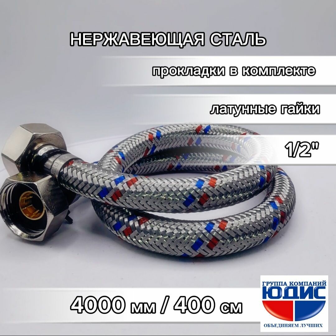 Купить Подводка гибкая для воды 1/2" В/В (гайка-гайка) 4000мм (400см) GK-YUDIS