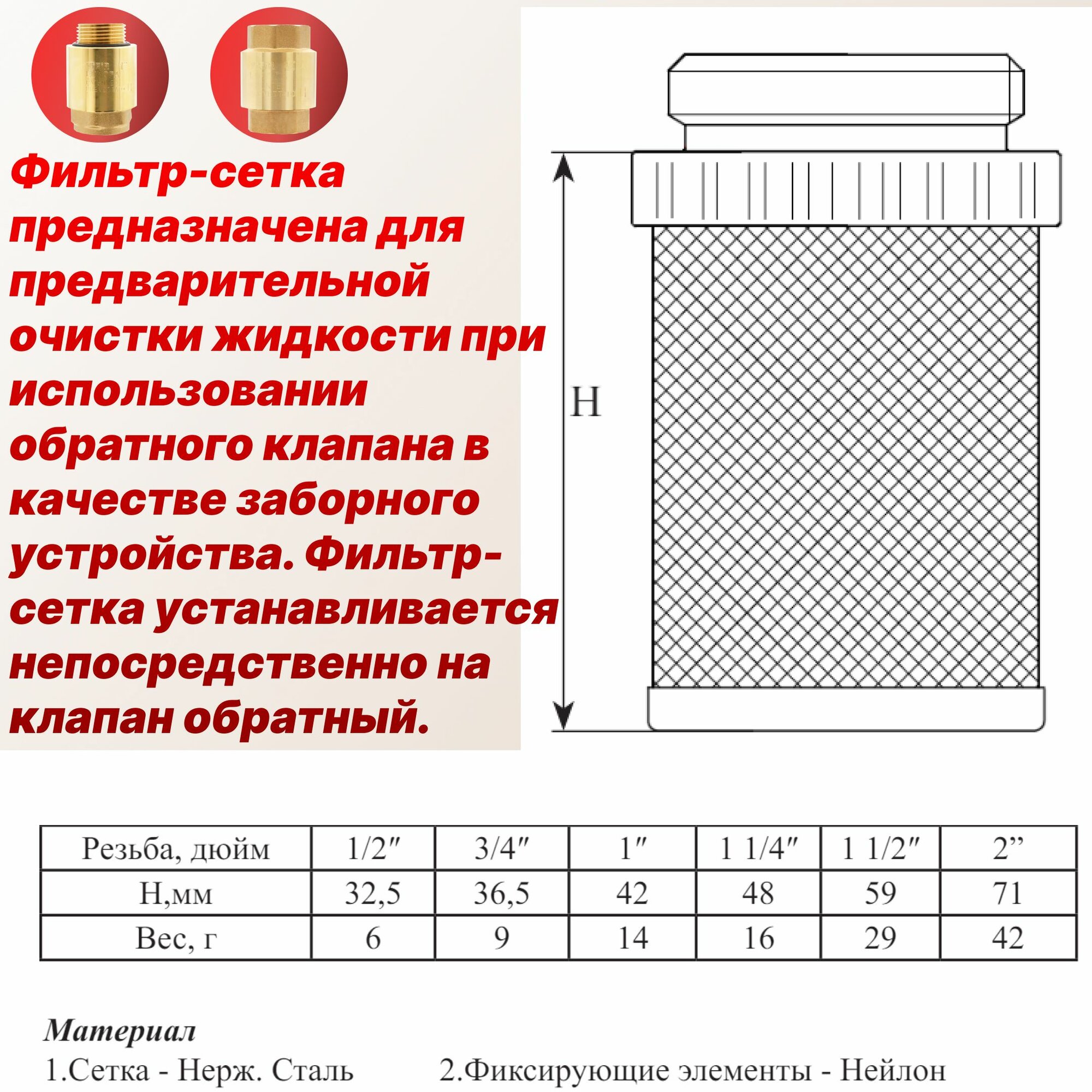 Ниже Вы можете прочитать отзывы на Сетка для обратного клапана 1/2, ознакомится с подробными характеристиками, посмотреть интересные обзоры и фотографии на Сетка для обратного клапана 1/2.