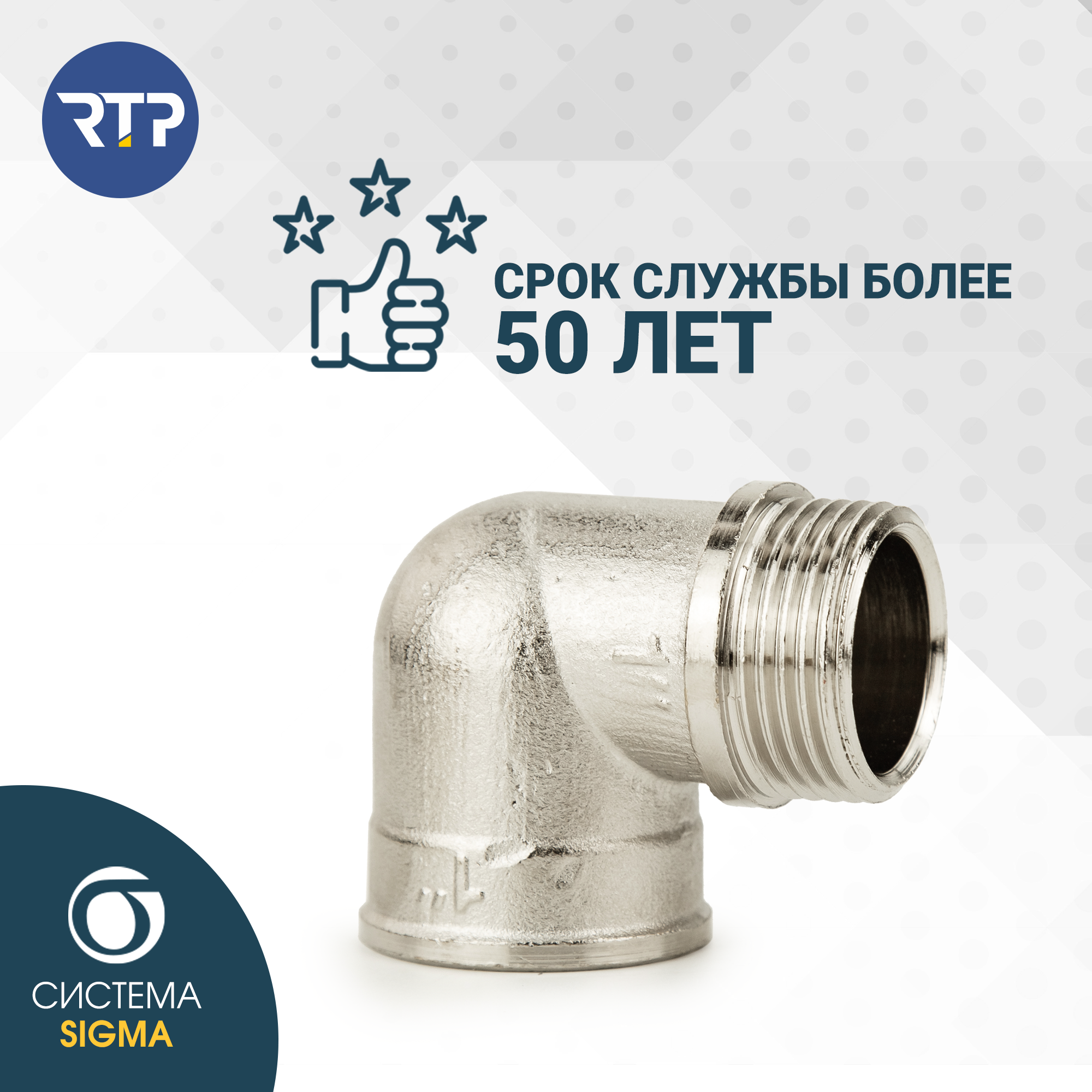 Угольник латунь внутр./наружн. резьба 1/2дюймх90град. никель (инд. упак.) RTP 34931