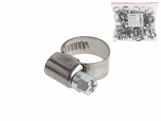Хомут червячный 20-32 мм, нерж.сталь W2 (50 шт в пакете) STARFIX (SM-67964-50) интересное:
