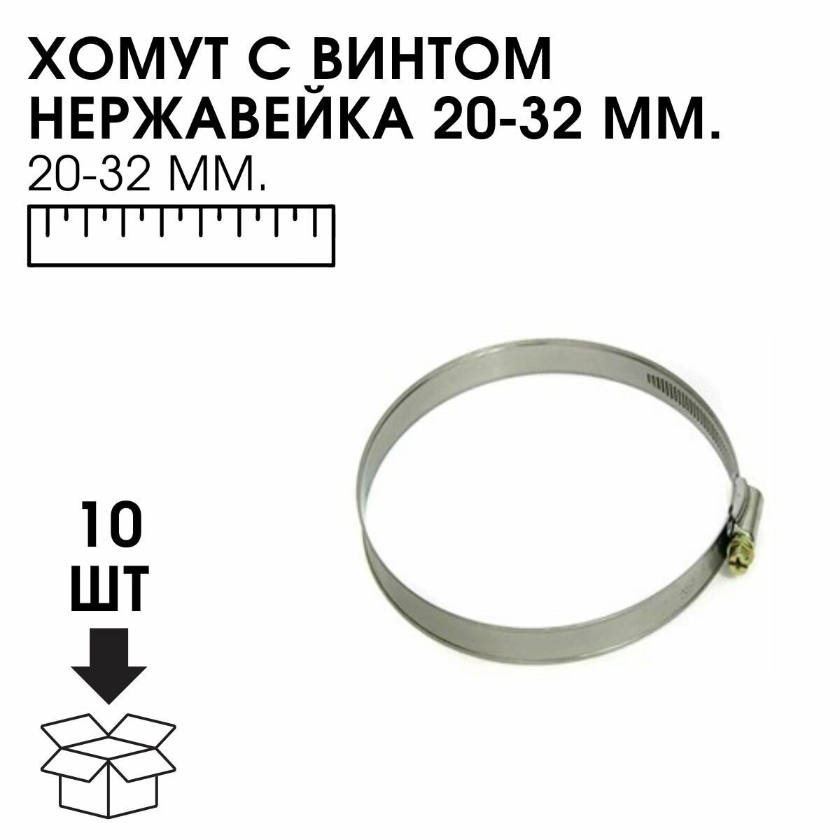 Купить Хомут червячный нержавейка W2 20-32 (10 шт)