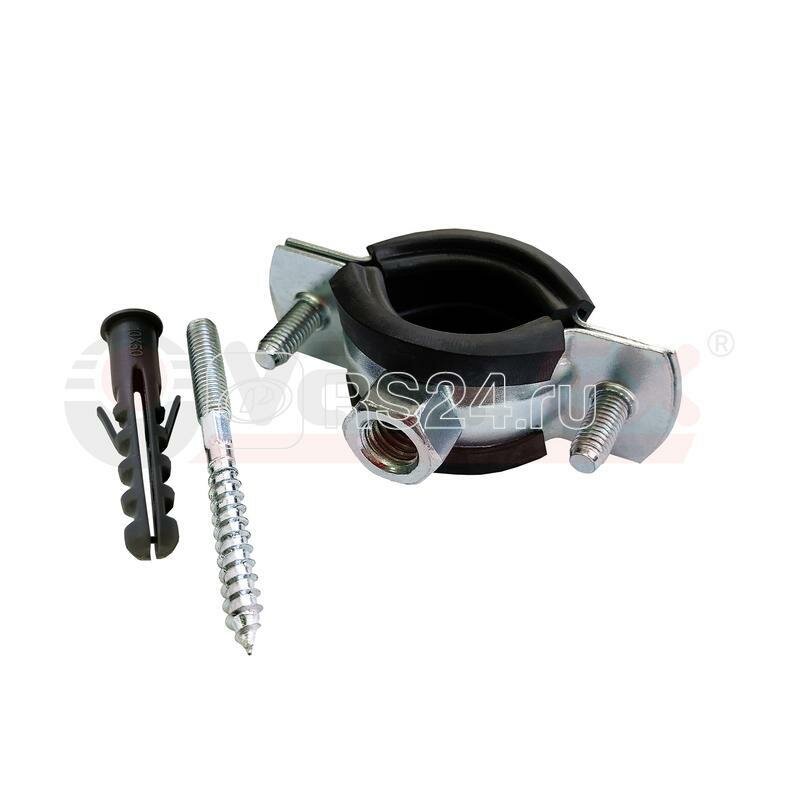 Купить Хомут РМ d20-25мм 1/2дюйм с резиновым уплотнением (в компл. шпилька М8х80 и дюбель) оцинк. VALFEX 45WR-22-М
