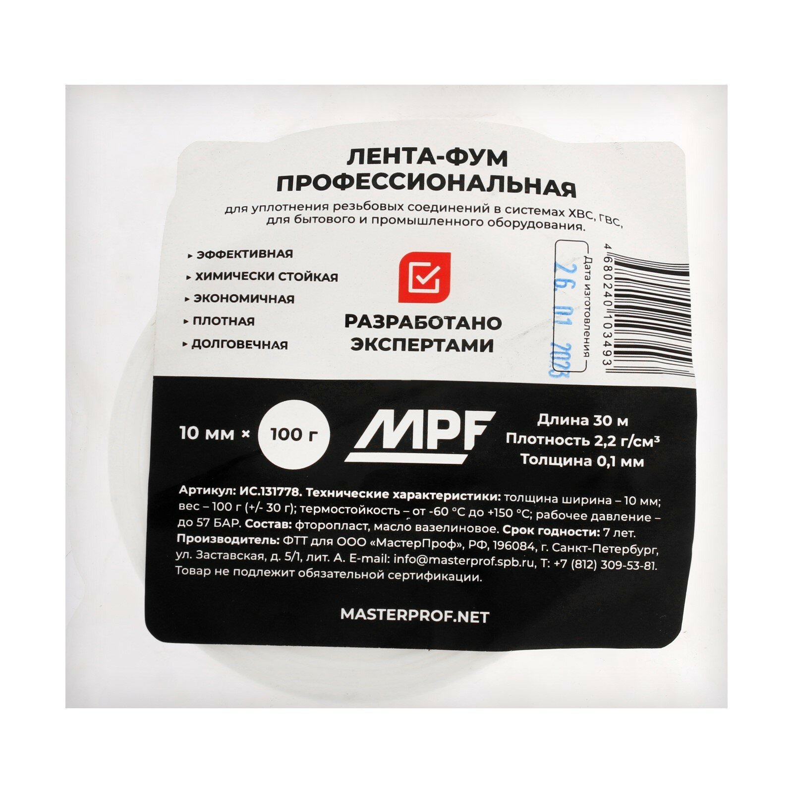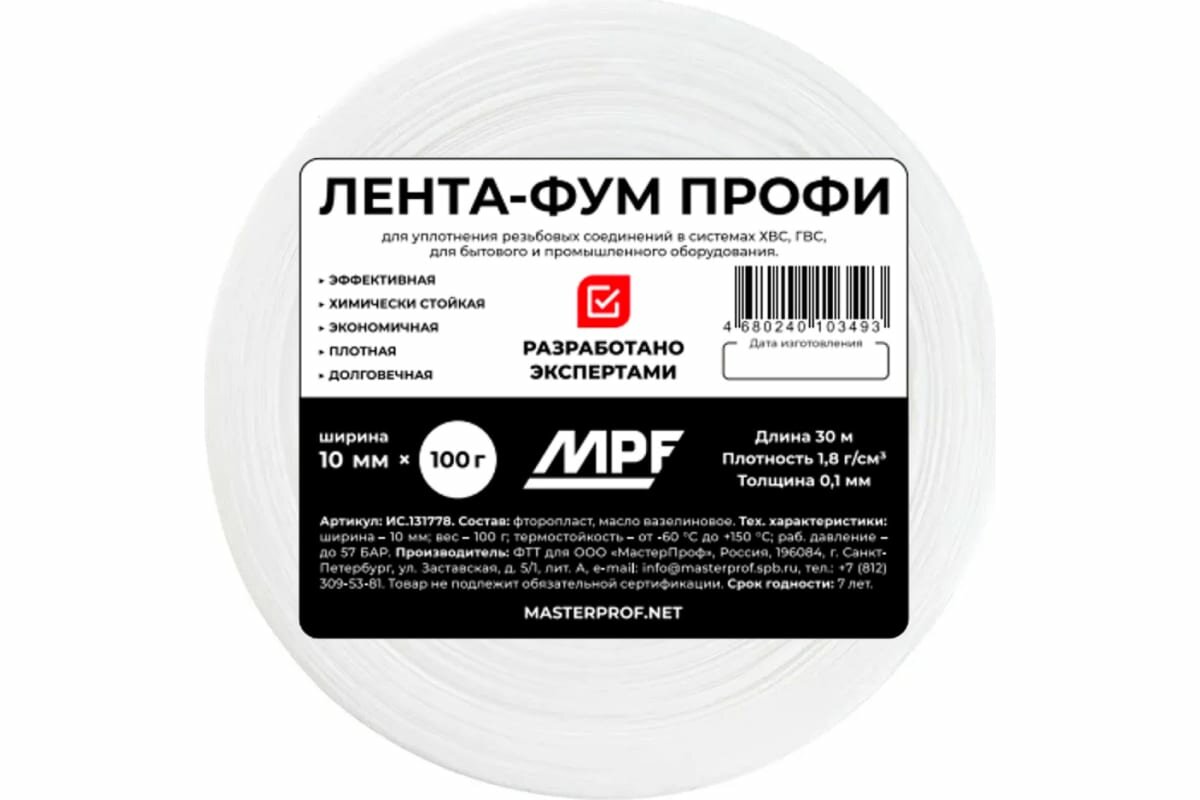 Лента ФУМ фторопластовая MPF-PROFESSIONAL 0,2мм х 10мм х 30м (100гр) интересное: