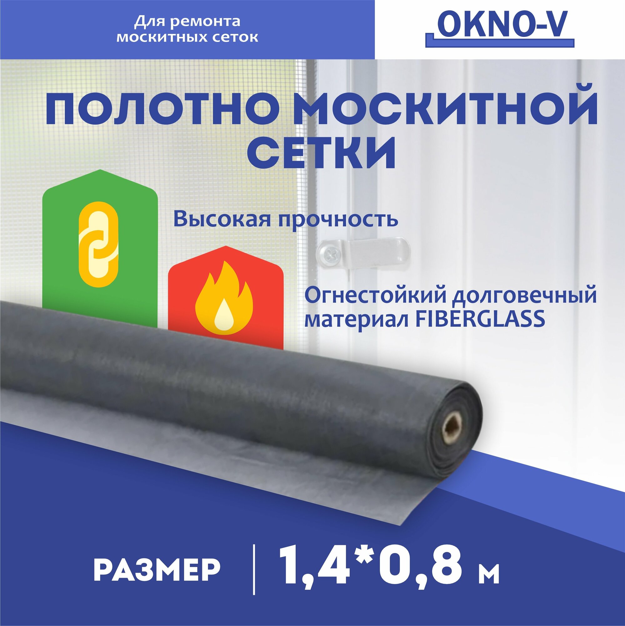 Москитная сетка "OKNO-V" - полотно 1,4 м*0.8 м, серая интересное: