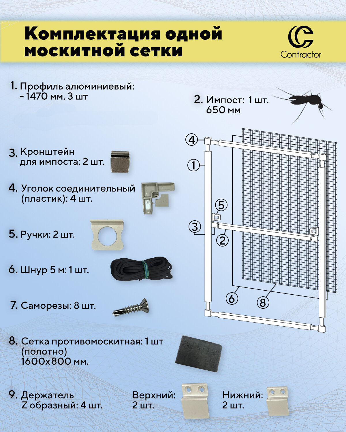 Москитная сетка на окно для самостоятельной сборки (профиль алюминиевый) 1530х700 мм, цвет белый интересное: