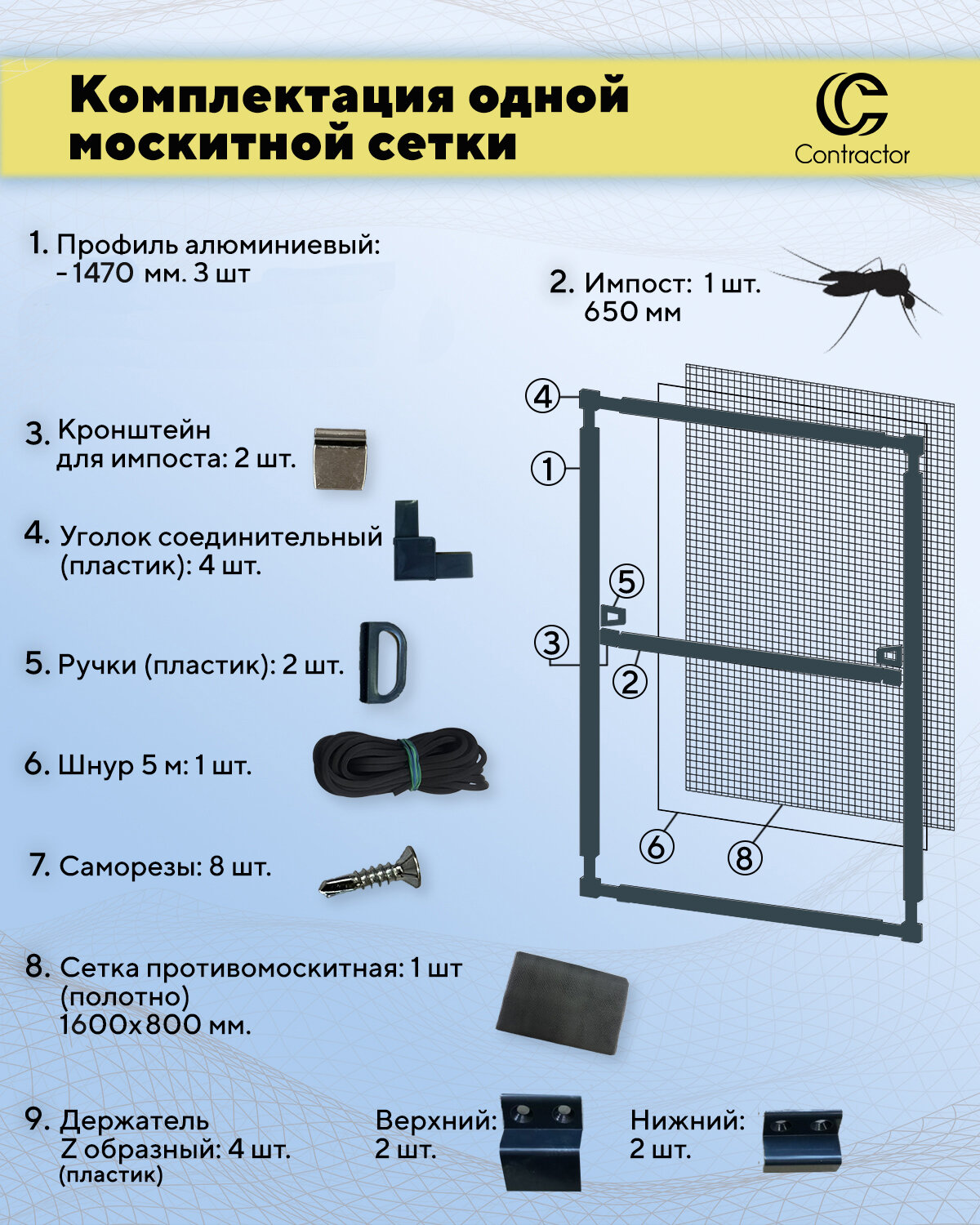 Москитная сетка на окно для самостоятельной сборки (профиль алюминиевый) 1530х700 мм, цвет антрацитовый интересное:
