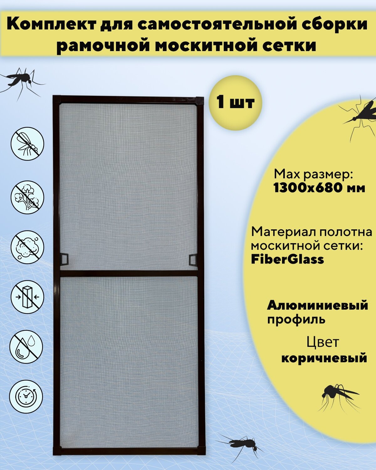 Москитная сетка на окно для самостоятельной сборки (профиль алюминиевый) 1300х680 мм, цвет коричневый интересное: