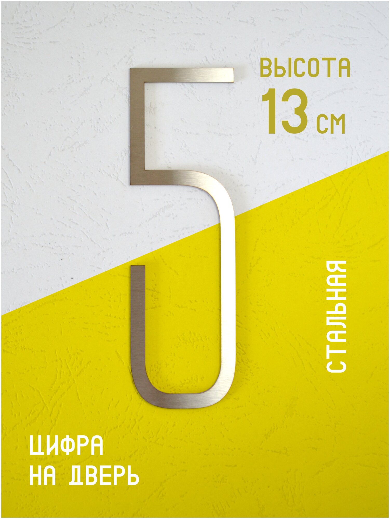 Цифра на дверь 5. Дизайнерская цифра на дверь 5 из нержавеющей стали