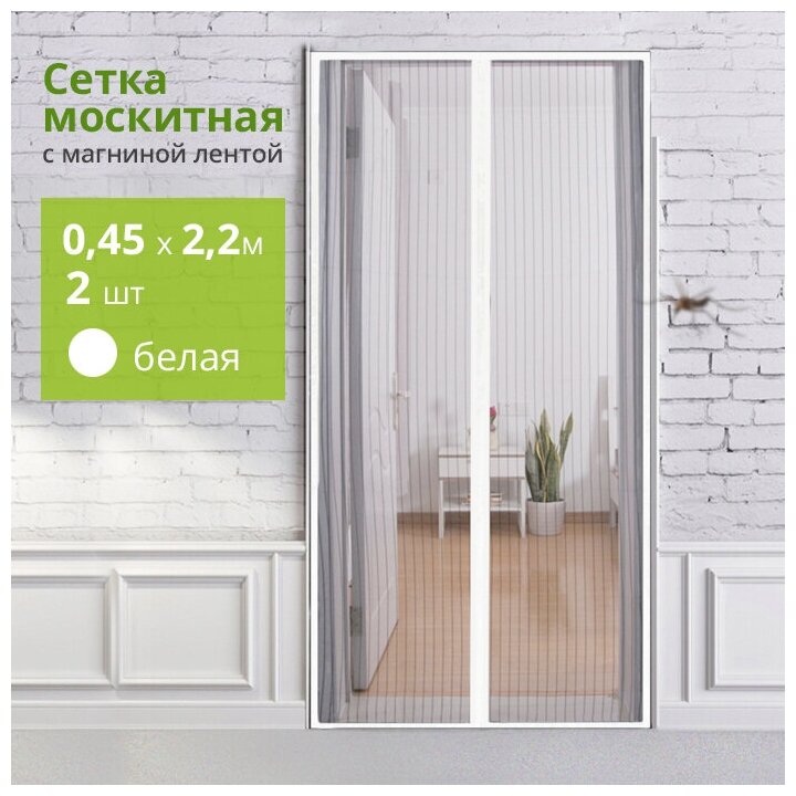 Сетка москитная `PRAKTISCHE` 0,45х2,2м-2штуки для дверного проема с магнитами белая