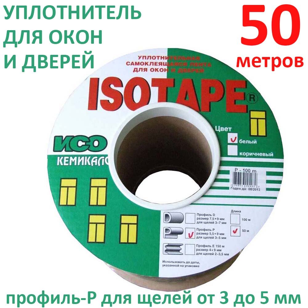 Купить Уплотнитель для окон и дверей ISOTAPE, профиль-P, белый, 50 м