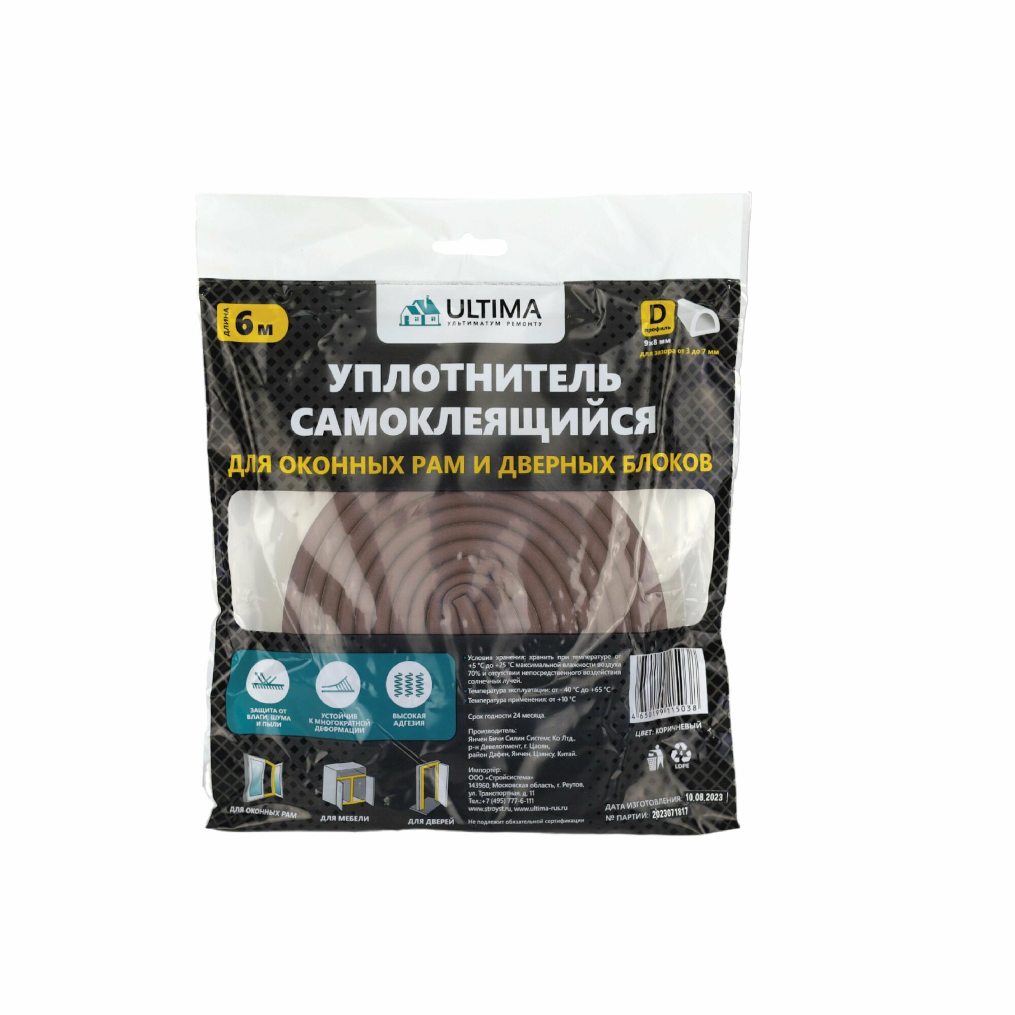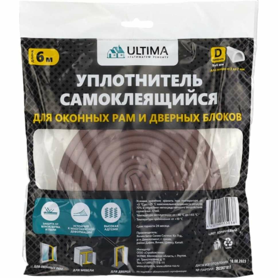 Уплотнитель для окон и дверей Ultima D-профиль, 9х8мм, 6 метров (2х3м), коричневый, самоклеящийся ULTDВ00620 интересное: