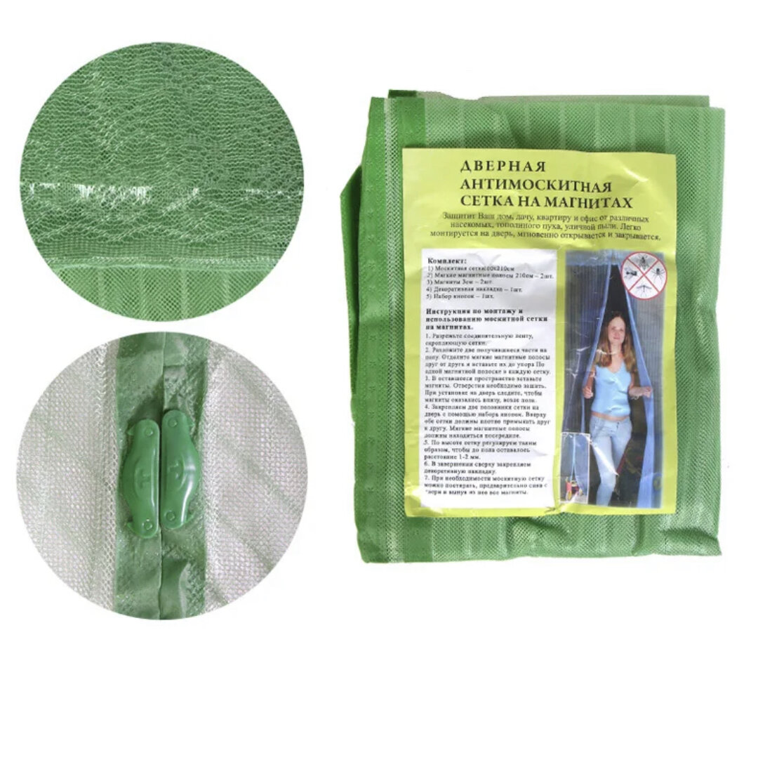 Сетка антимоскитная на дверь / шторка на магнитах 90*210 мм зеленая интересное: